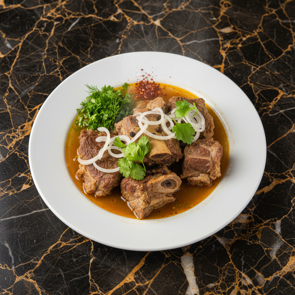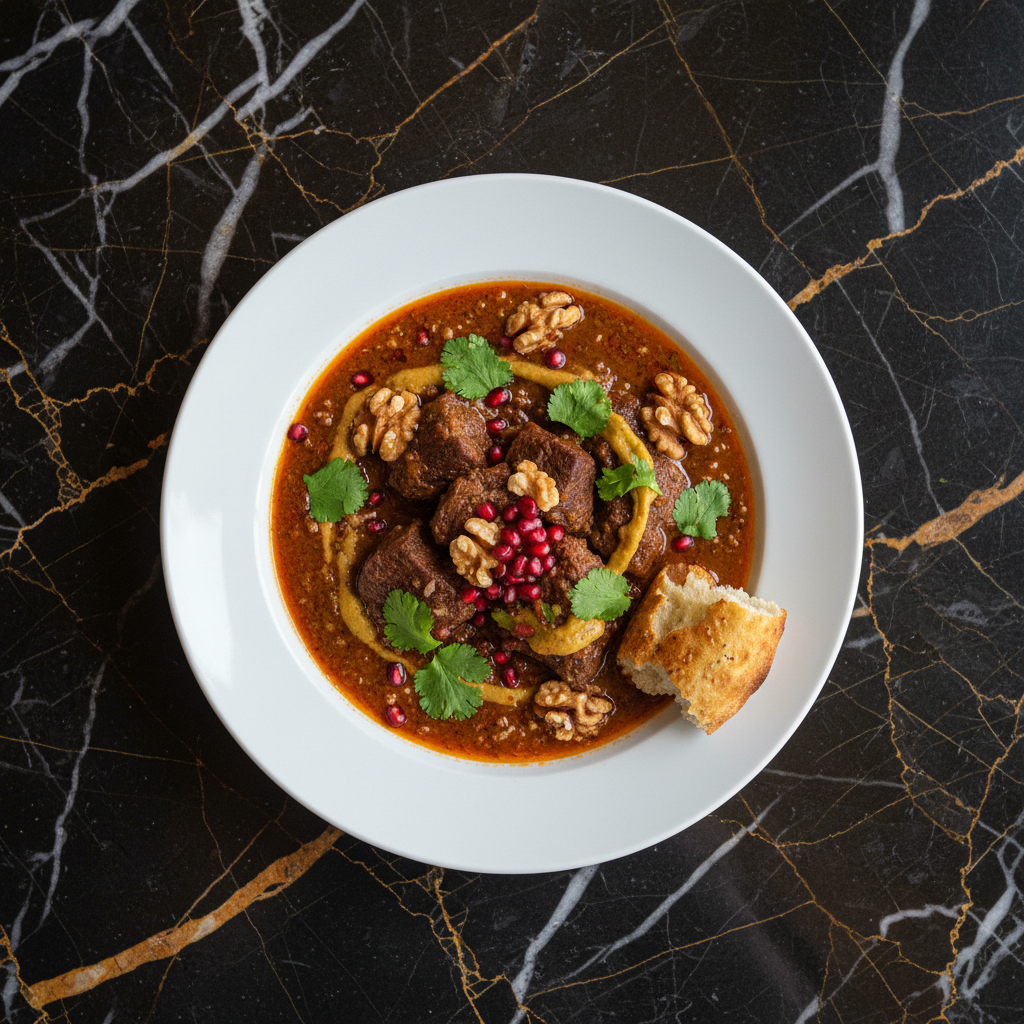 A rich and flavorful Georgian beef stew, traditionally made with walnuts, sour plum puree (tkemali), and a blend of aromatic spices. This version focuses on a deeply savory broth and tender beef.