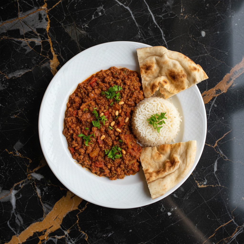 A hearty and flavorful Iraqi minced meat and tomato stew, often served with rice or bread. It's a comforting dish that highlights simple, fresh ingredients.