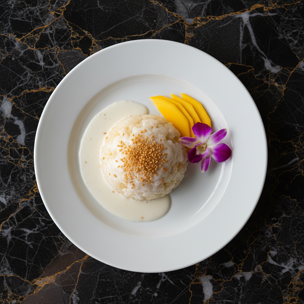 A simple yet delightful sweet sticky rice dish, often served as a snack or dessert. It's made with glutinous rice steamed to perfection and then mixed with sweetened coconut milk and toasted sesame seeds.