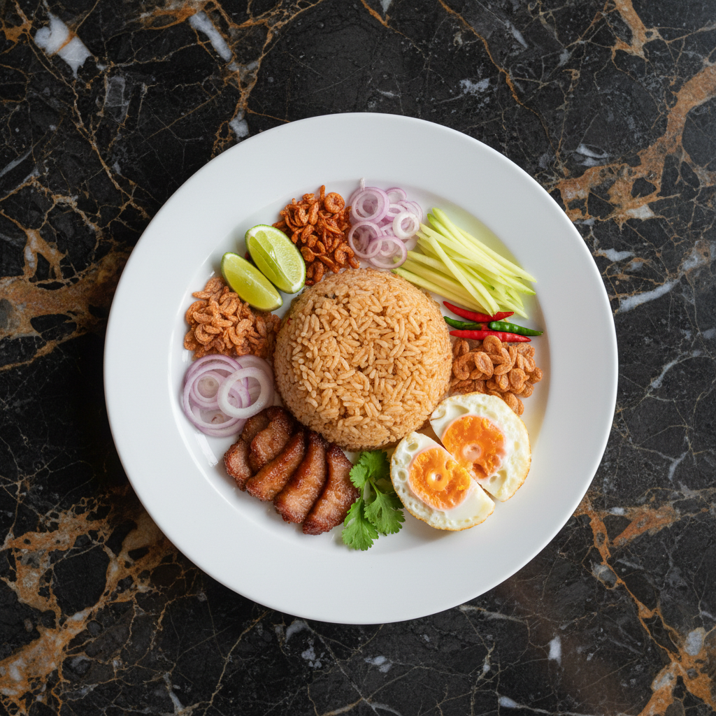 A quick and flavorful Thai fried rice featuring the complex sweet, savory, and spicy notes of nam prik pao (Thai chili paste). Perfect for a weeknight meal.