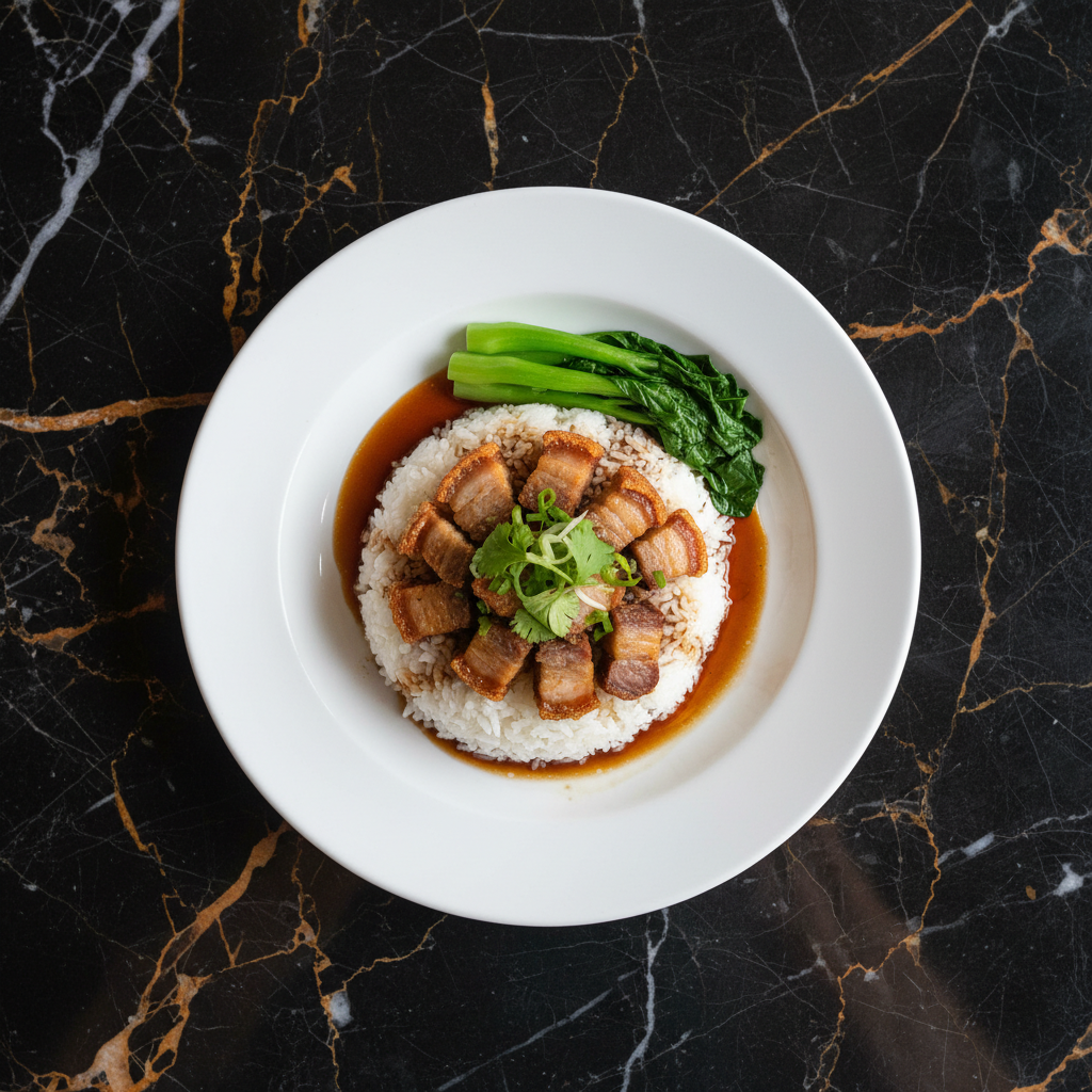 A beloved Thai street food classic, Khao Moo Krob features succulent, tender pork belly with shatteringly crispy skin, served over fluffy steamed rice and drizzled with a sweet, savory soy sauce. This recipe guides you through achieving that perfect crackling texture.