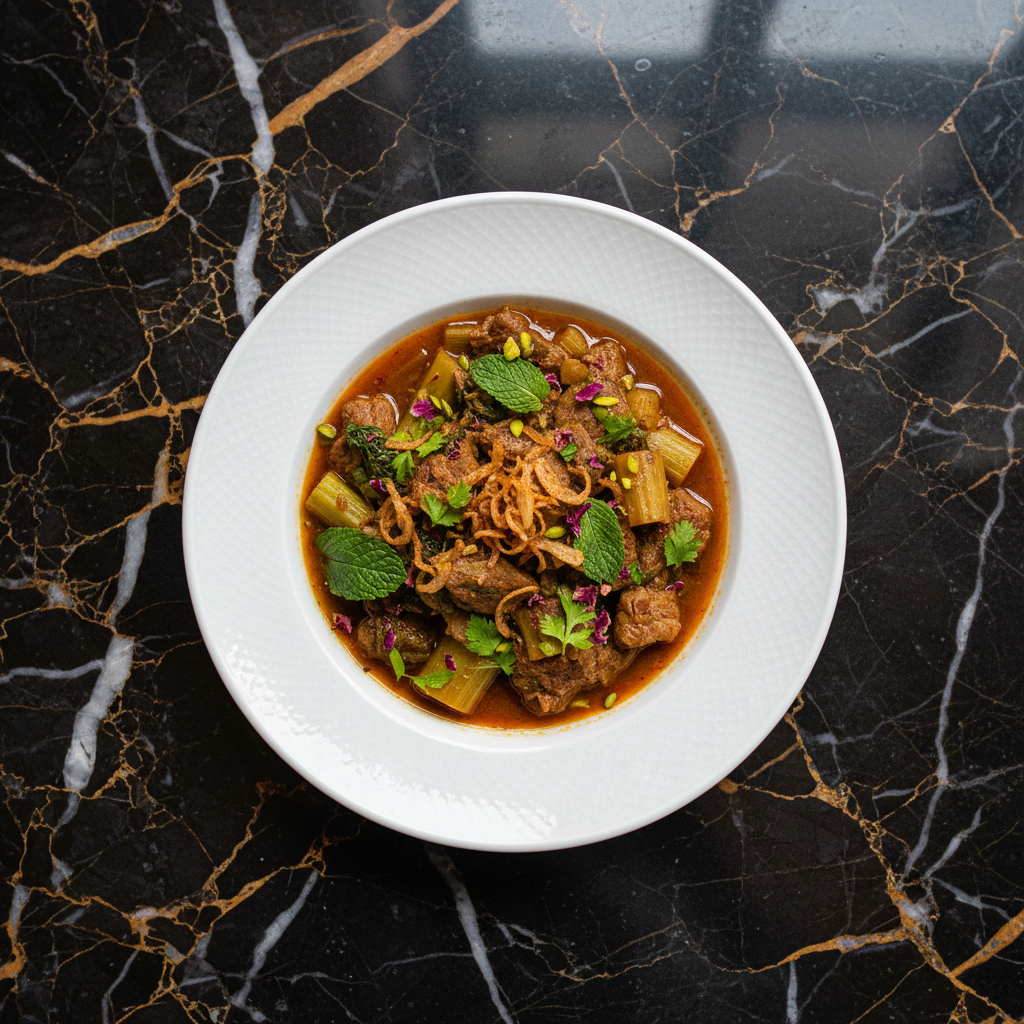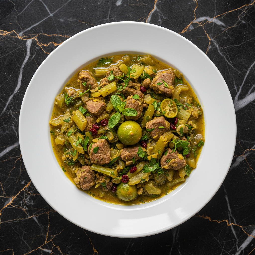 A fragrant and refreshing Persian stew featuring tender lamb, crisp celery, and a vibrant blend of fresh herbs. This light yet flavorful dish is a delightful departure from heavier stews.