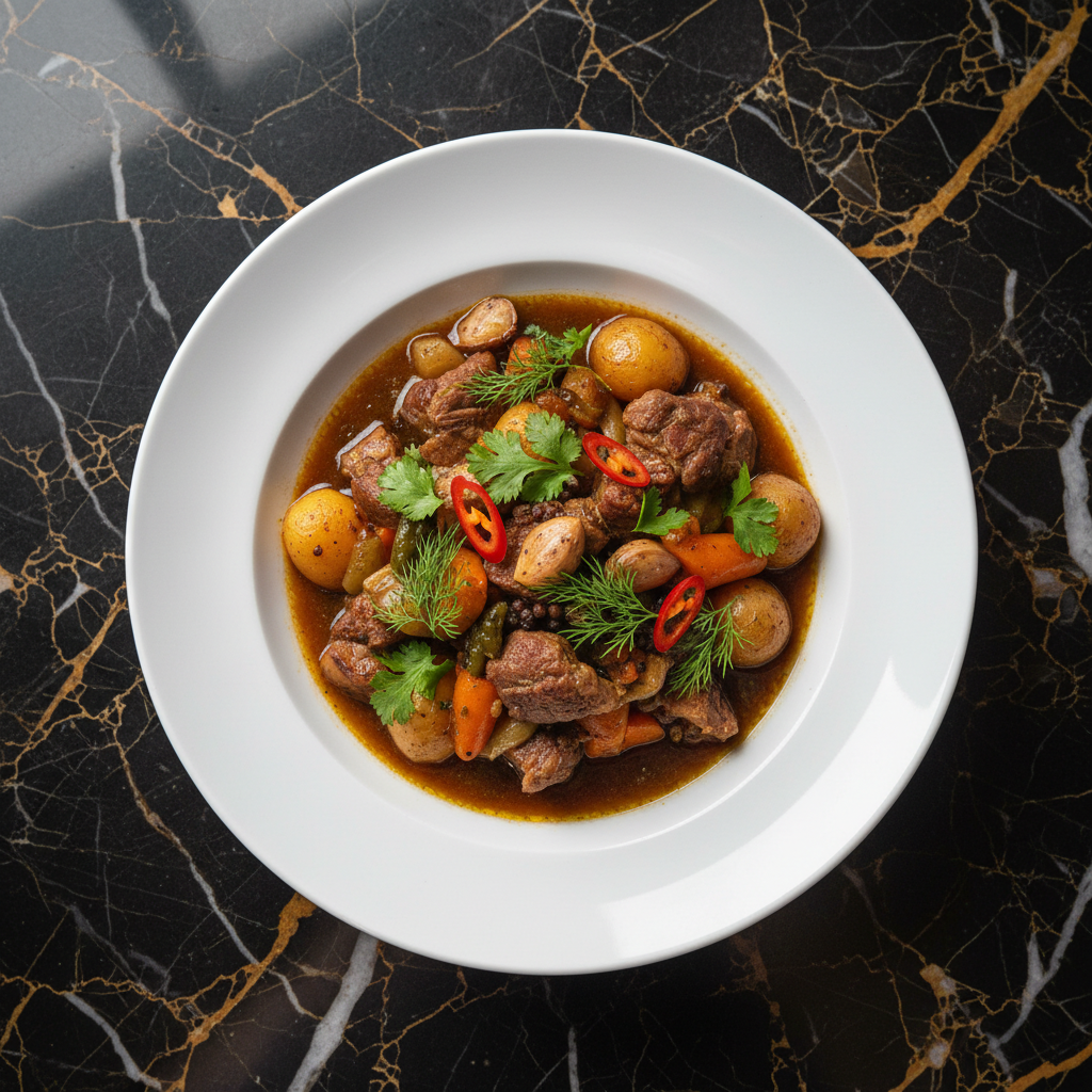A hearty and flavorful stew inspired by the traditional Mongolian Khorkhog, featuring tender lamb and root vegetables simmered in a rich broth. This version simplifies the cooking method while retaining the essence of the original.
