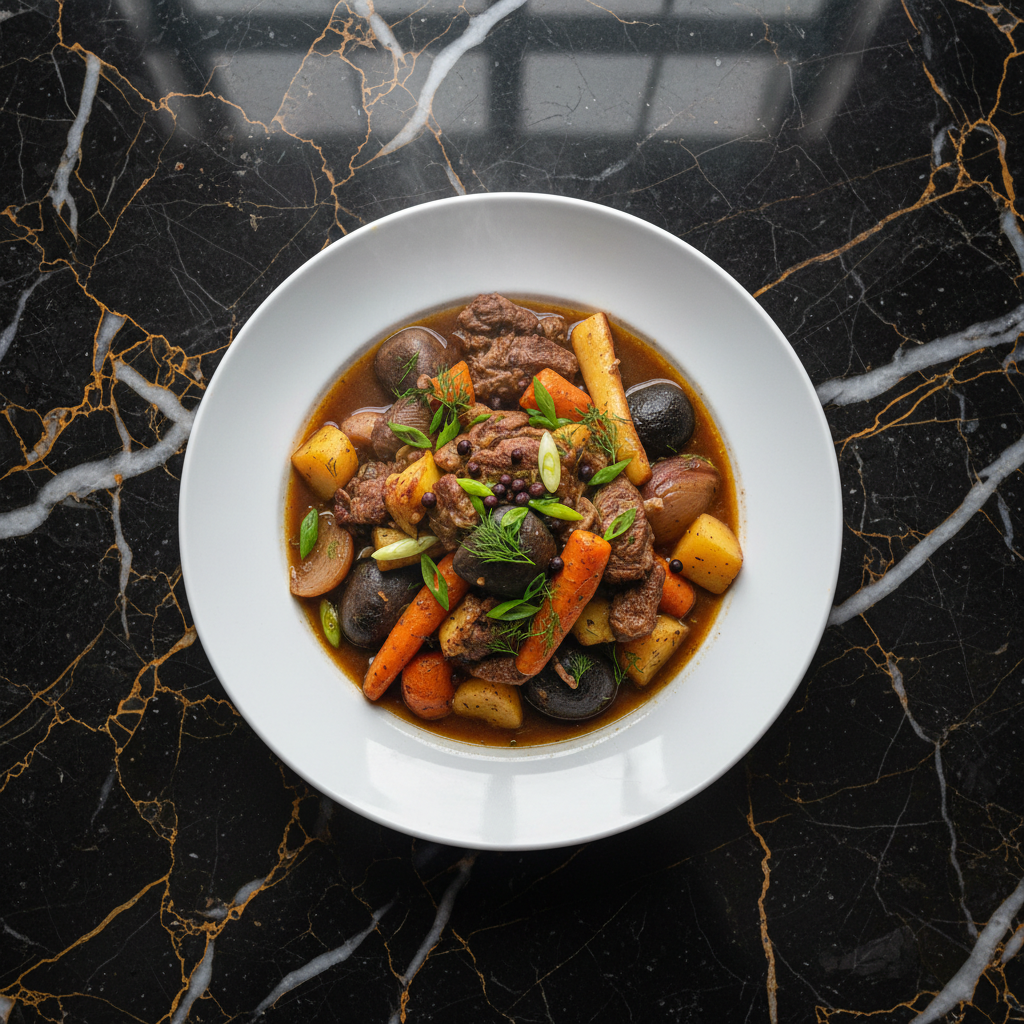 A hearty and flavorful stew inspired by the traditional Mongolian Khorkhog, featuring tender lamb and a medley of root vegetables, slow-cooked to perfection. This version simplifies the cooking process while retaining the essence of the original.