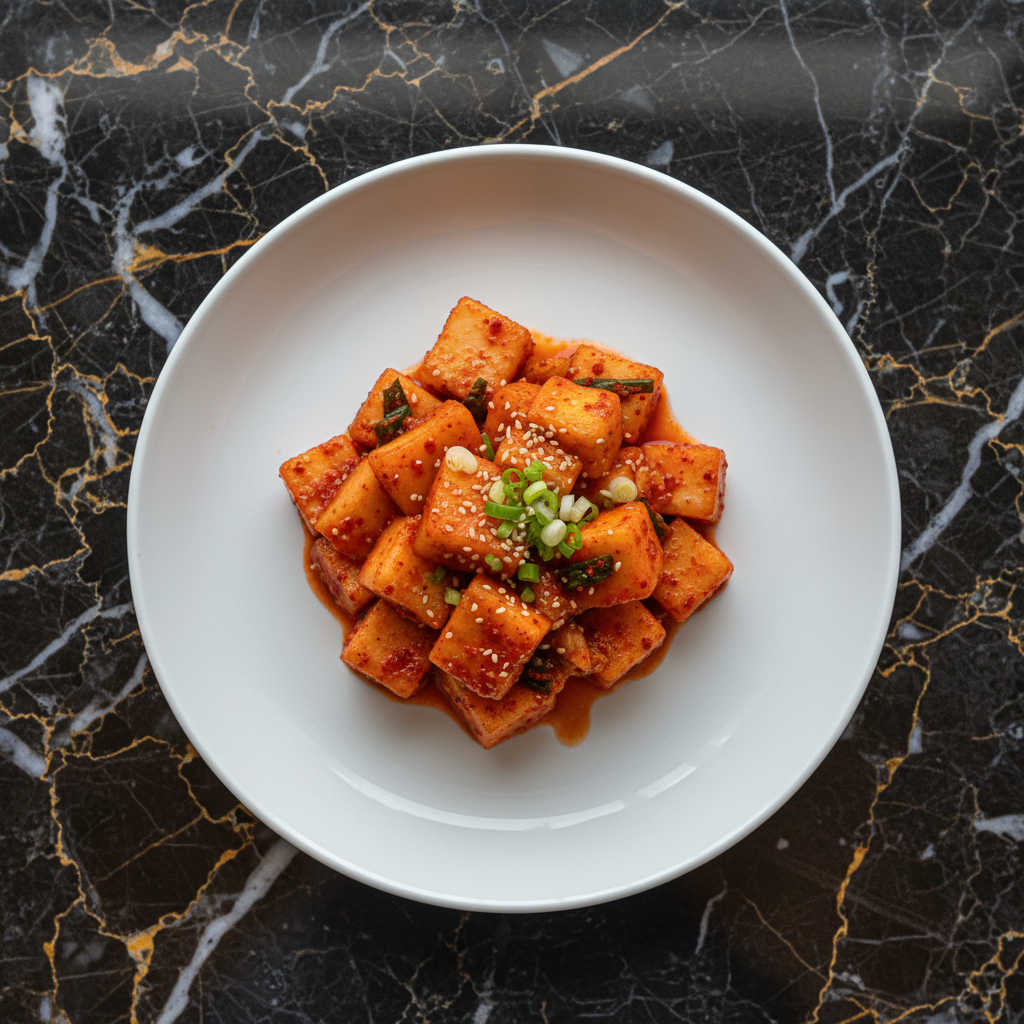 Kkakdugi is a refreshing and crunchy Korean kimchi made with cubed radish. It's known for its vibrant red color, spicy kick, and tangy fermented flavor. Perfect as a side dish with any Korean meal, especially with stews and soups.