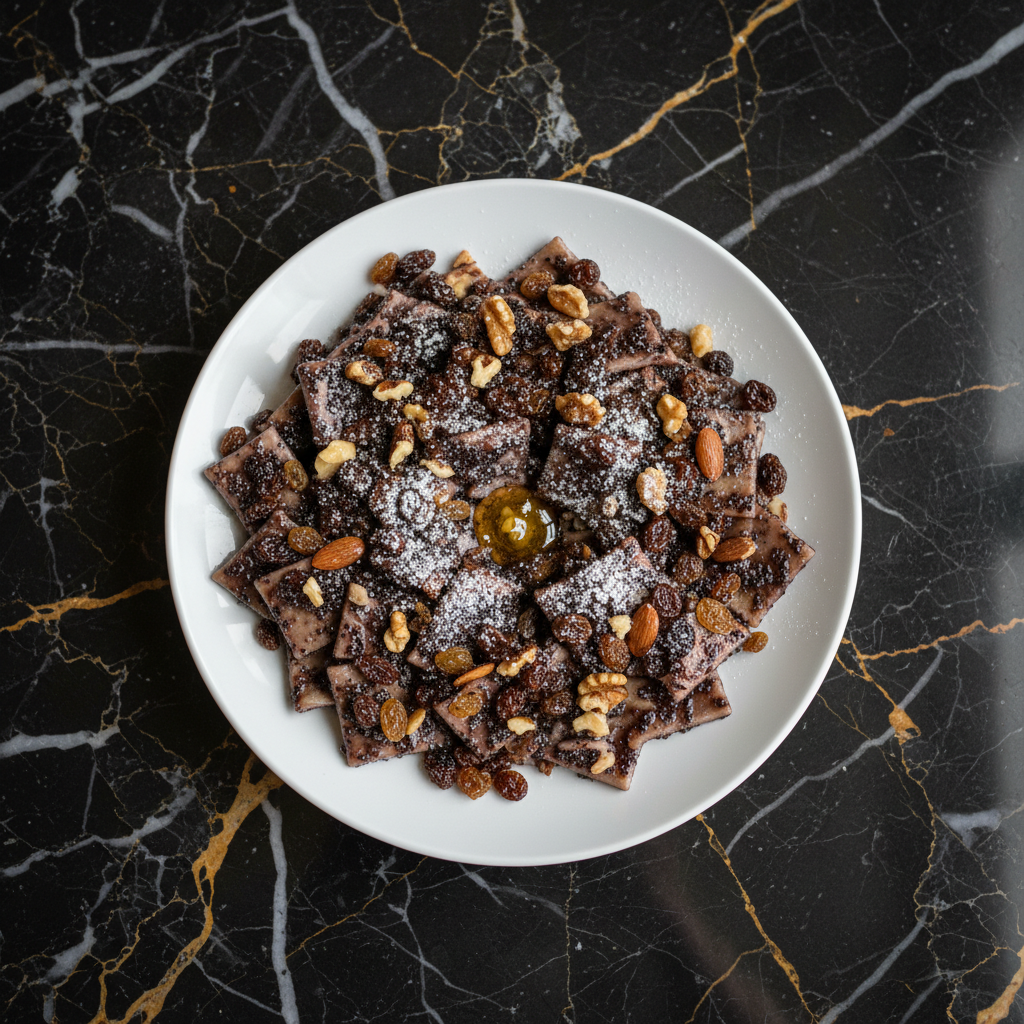 A traditional sweet Polish Christmas Eve (Wigilia) dish featuring tender egg noodles tossed with a rich mixture of ground poppy seeds, honey, raisins, and butter. This dish is often one of the twelve traditional dishes served on Christmas Eve.