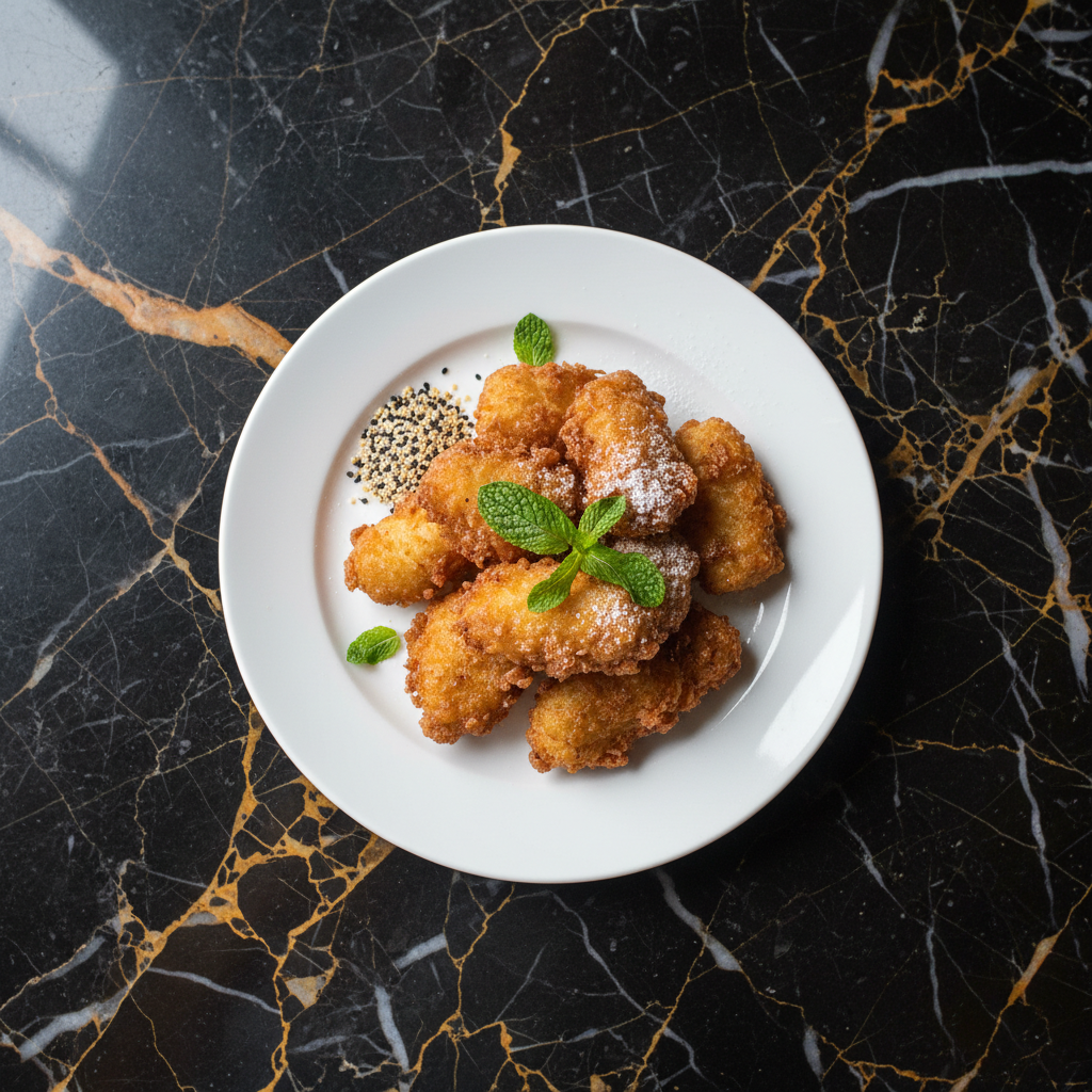 Kluay Tod are sweet, ripe bananas coated in a crispy, coconut-sesame batter and deep-fried to golden perfection. A beloved street food dessert, these offer a delightful contrast of textures and a warm, sweet flavor.