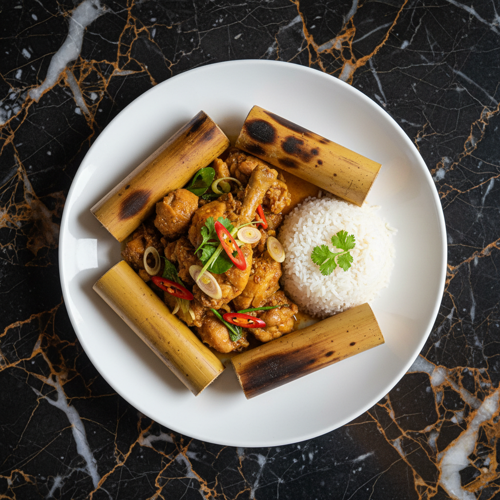 A traditional Iban dish from Borneo, Ayam Pansuh features chicken cooked in bamboo stalks with lemongrass, ginger, and other aromatics, imparting a unique smoky flavor and tender texture. While popular in Sarawak and Sabah, it's also enjoyed in Brunei.