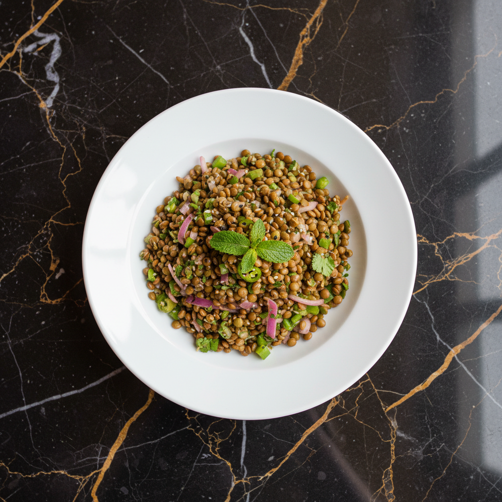 A refreshing and flavorful cold salad made with tender green lentils, finely diced vegetables, and a zesty mustard-lemon dressing. Traditionally enjoyed during fasting periods, Azifa is a light yet satisfying dish.