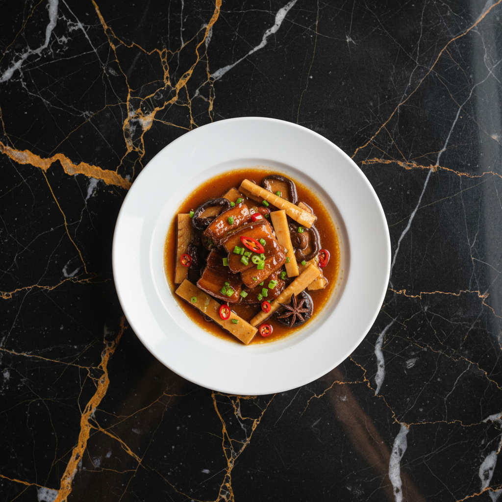 Babi Pongteh is a classic Nyonya (Peranakan) dish featuring tender braised pork belly in a rich, savory-sweet sauce made with fermented soybean paste (taucheo). This comforting stew is a staple in many Singaporean and Malaysian households, often served during festive occasions and family gatherings. The slow braising process allows the flavors to meld beautifully, creating a deeply satisfying dish that is even better the next day.