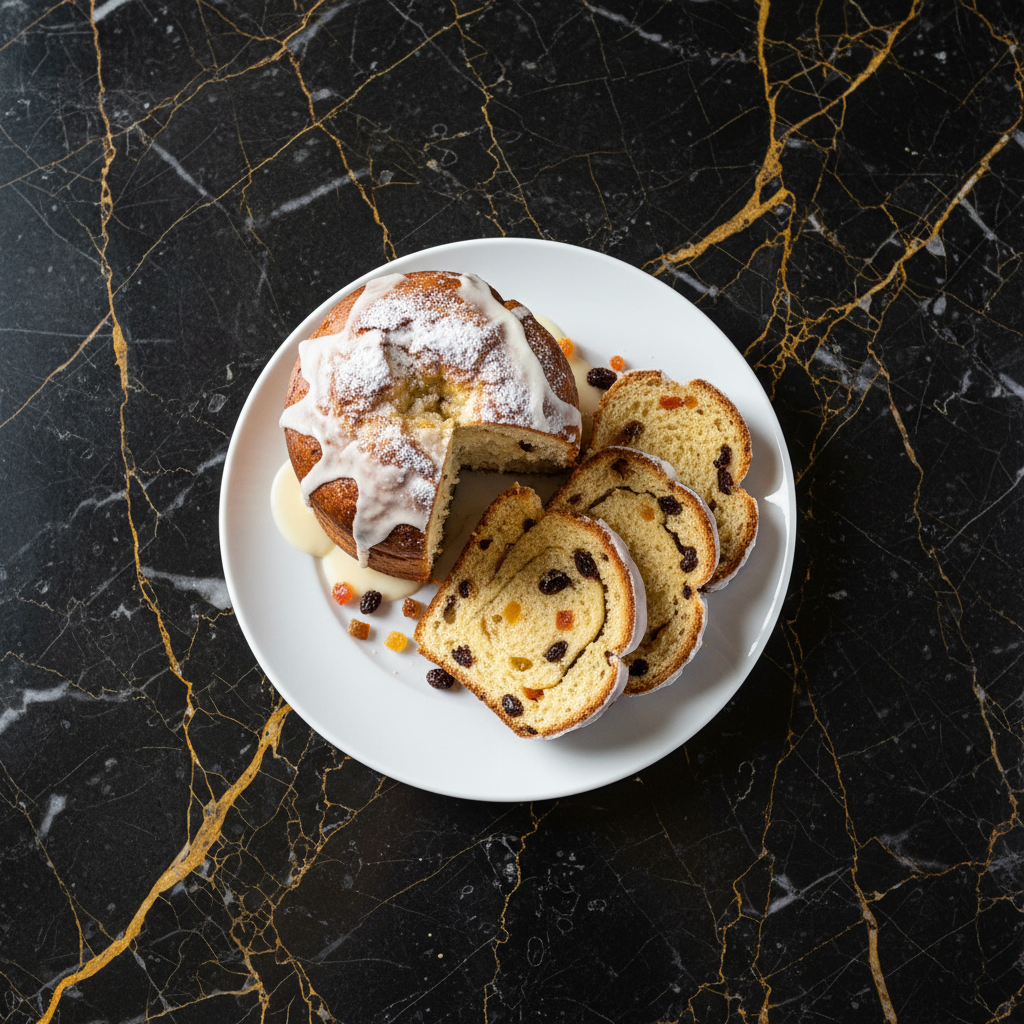 A rich, brioche-like yeast bread, traditionally baked for Easter. It's often studded with raisins and candied citrus peel, offering a slightly sweet and aromatic flavor profile.