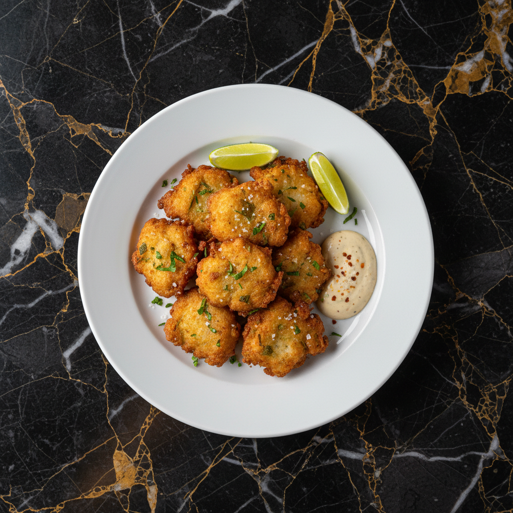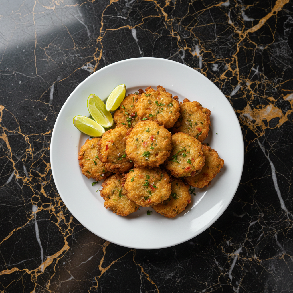 Crispy, savory fritters made from salted cod (bacalao) and a seasoned batter. These are a popular appetizer or snack, often enjoyed with a squeeze of lime.