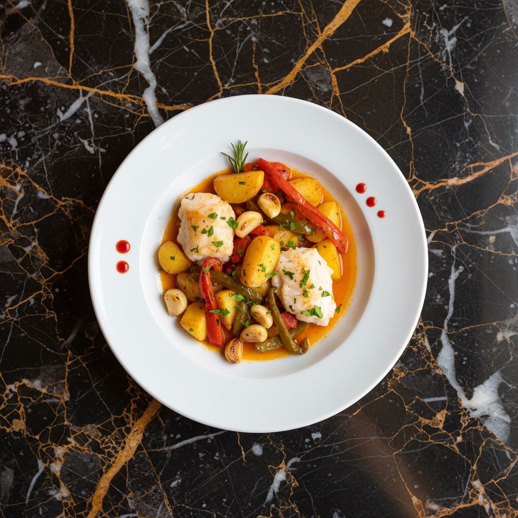 A hearty Navarrese salt cod dish featuring tender potatoes, sweet peppers, and a rich garlic-tomato sauce. Traditionally prepared by muleteers (ajoarrieros) for sustenance on long journeys.