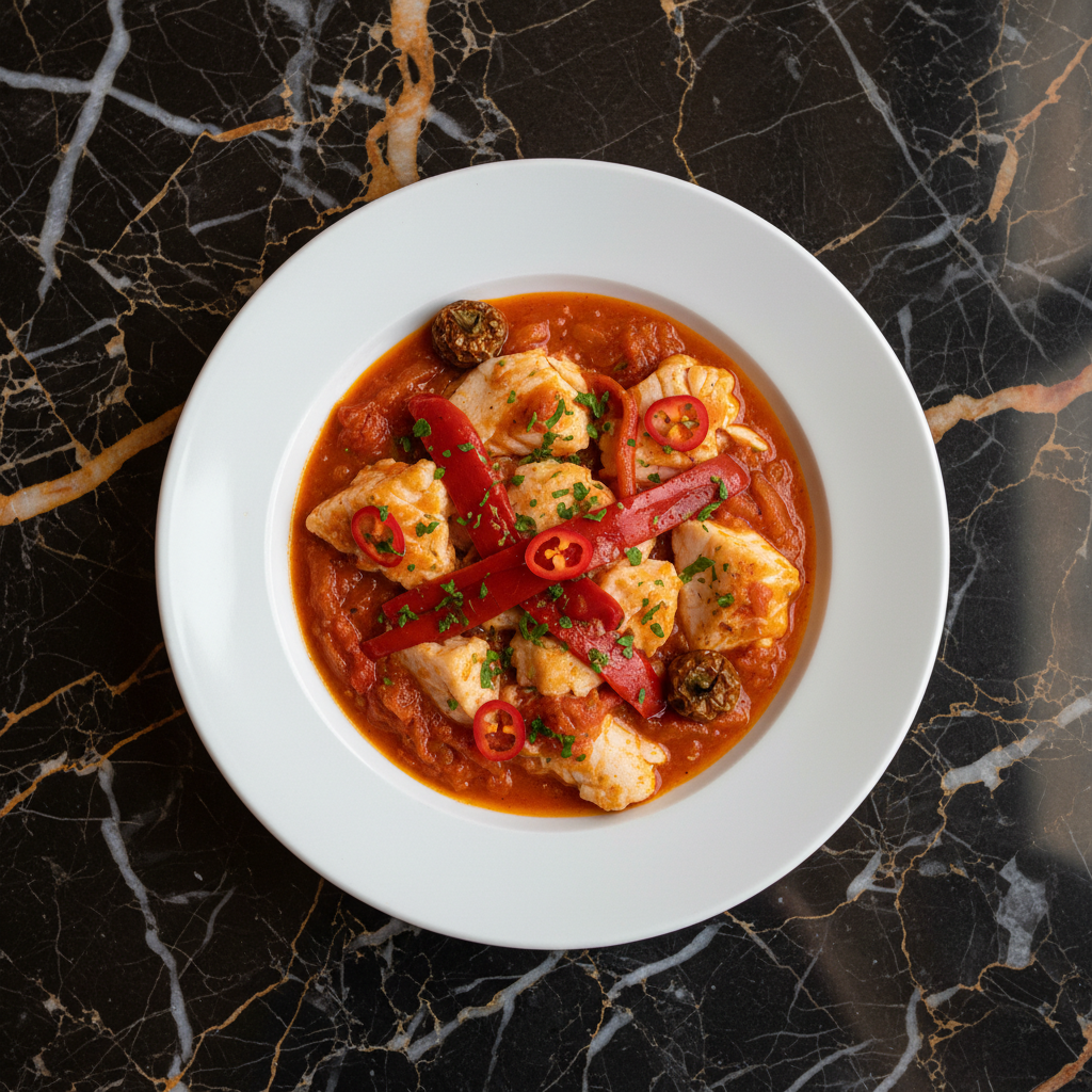 A classic Basque dish featuring salt cod simmered in a rich, sweet red pepper sauce. Traditionally served during Christmas Eve celebrations.