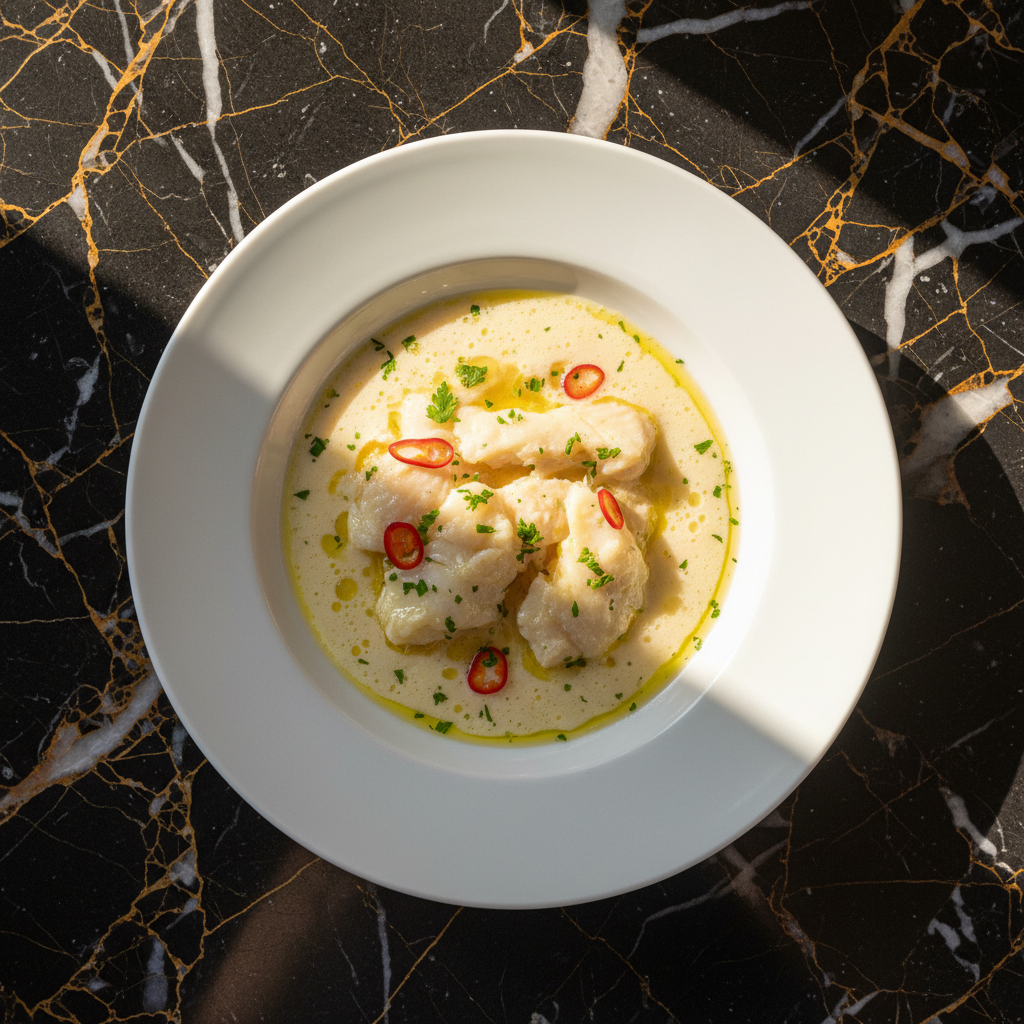 A classic Basque dish featuring salt cod gently cooked in olive oil, which then emulsifies with the released cod gelatin to create a rich, creamy, and flavorful sauce. The 'pil pil' sound refers to the gentle bubbling of the oil during the emulsification process.