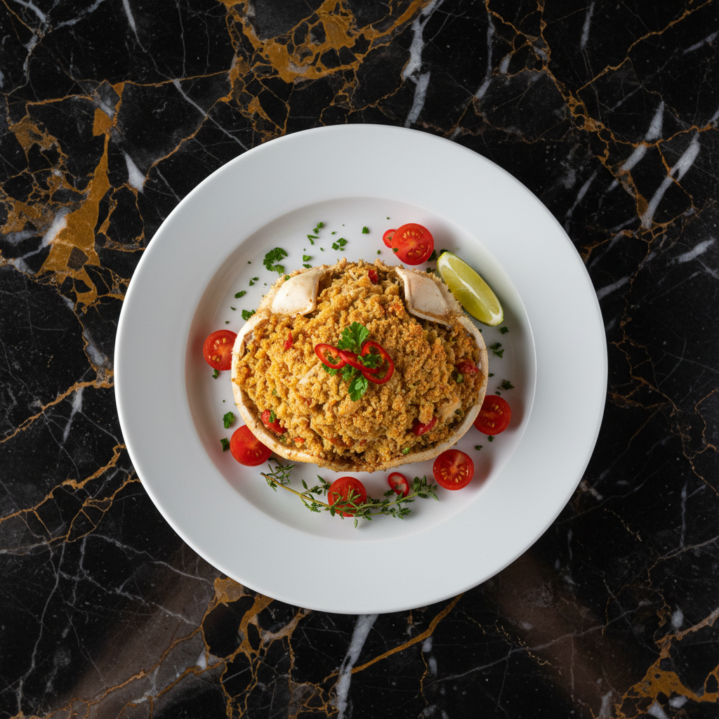 A savory and flavorful baked crab dish, often made with fresh crab meat mixed with aromatic seasonings, breadcrumbs, and sometimes a touch of tomato and onion. It's a comforting and traditional Bahamian delicacy.