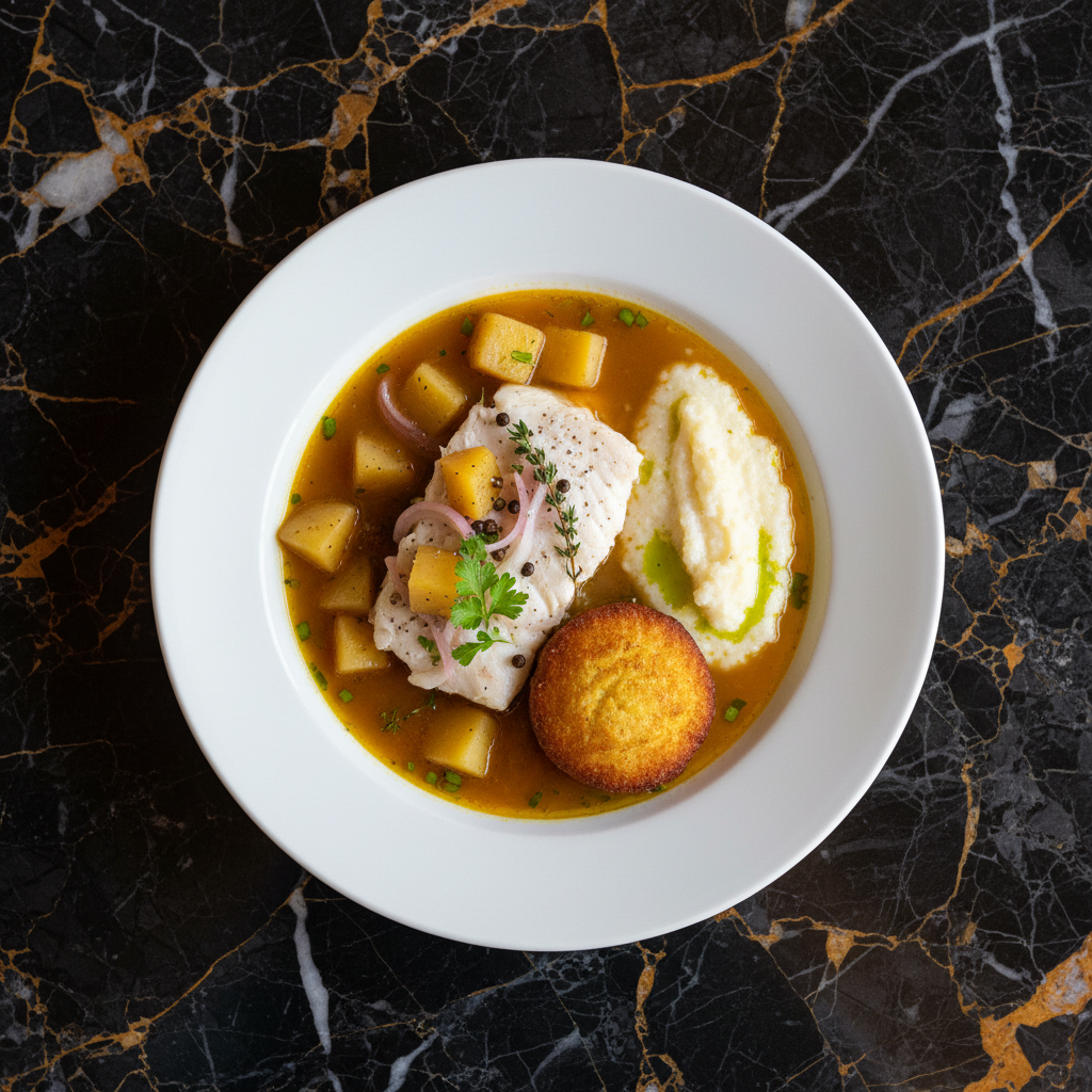 A comforting and flavorful one-pot dish, Bahamian Boiled Fish features tender, flaky white fish simmered with potatoes, onions, and aromatic spices in a savory broth. It's a traditional breakfast, lunch, or dinner staple, often served with grits or johnnycake.