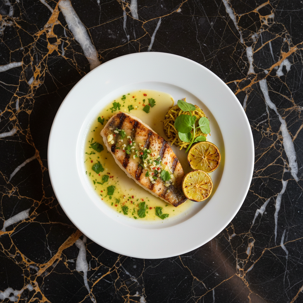 Fresh white fish, such as snapper or grouper, is grilled to perfection and then drizzled with a vibrant and tangy lime-butter sauce infused with garlic and herbs. This dish highlights the fresh seafood and bright flavors characteristic of Bahamian cuisine.