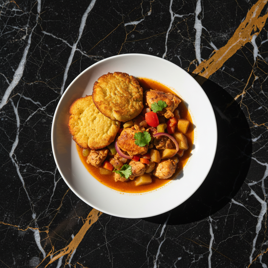 A hearty and flavorful stew featuring tender chunks of pork or chicken simmered with vegetables and spices, served with a side of traditional Bahamian Johnny Cake for dipping. This dish offers a comforting and authentic taste of Bahamian home cooking.