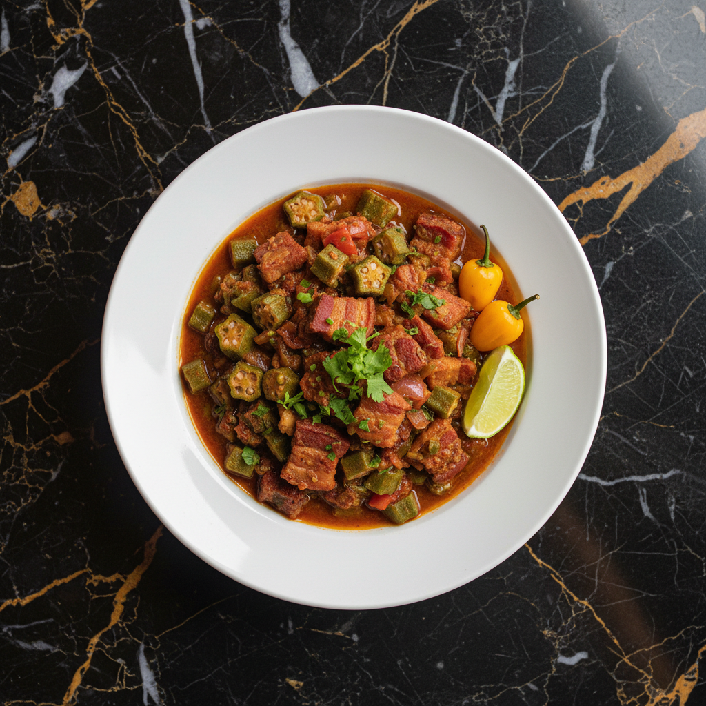 A hearty and traditional Bahamian stew featuring tender okra, savory salt pork, and aromatic seasonings, often served as a side dish or a light meal.