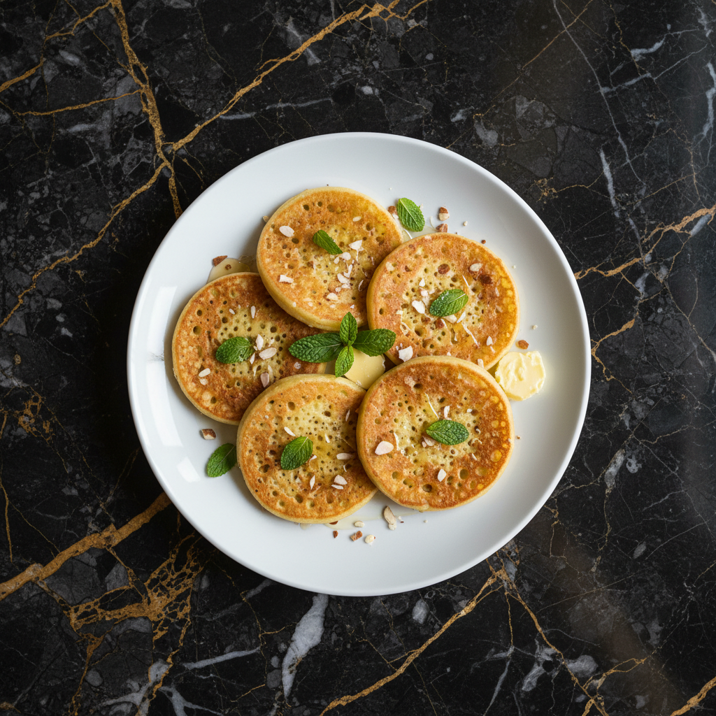 Baghrir, also known as 'thousand-hole pancakes', are delicate, spongy semolina pancakes that are a beloved breakfast staple in Morocco. Their unique texture comes from the aeration during cooking, creating countless tiny holes that soak up delicious toppings.