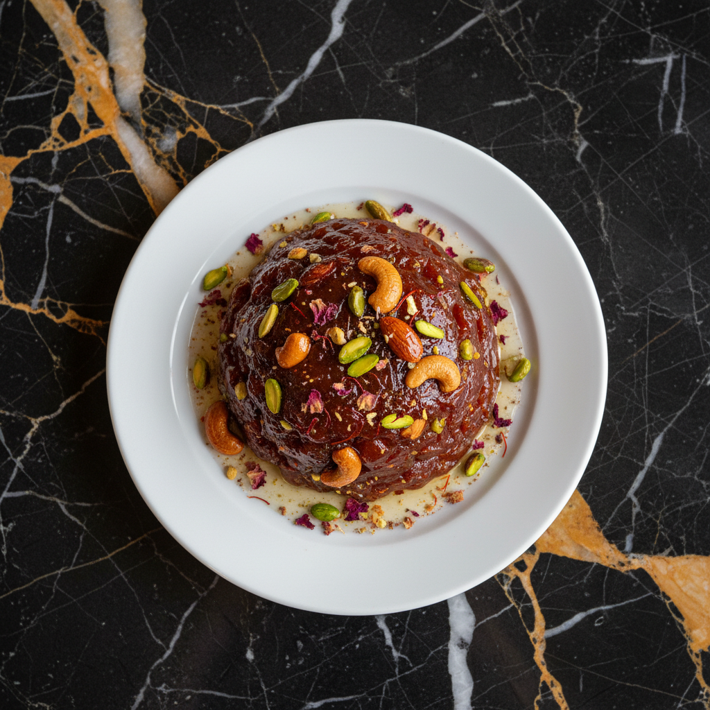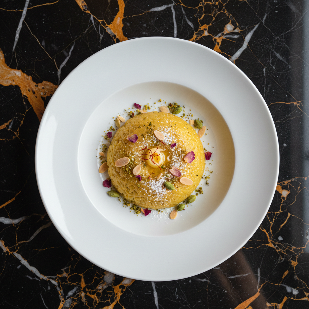 A delicate and fragrant dessert, this pudding is a celebration of aromatic spices and floral notes. Saffron lends a beautiful golden hue and subtle earthy flavor, while rosewater adds a distinct perfumed sweetness, creating a luxurious and refreshing treat.