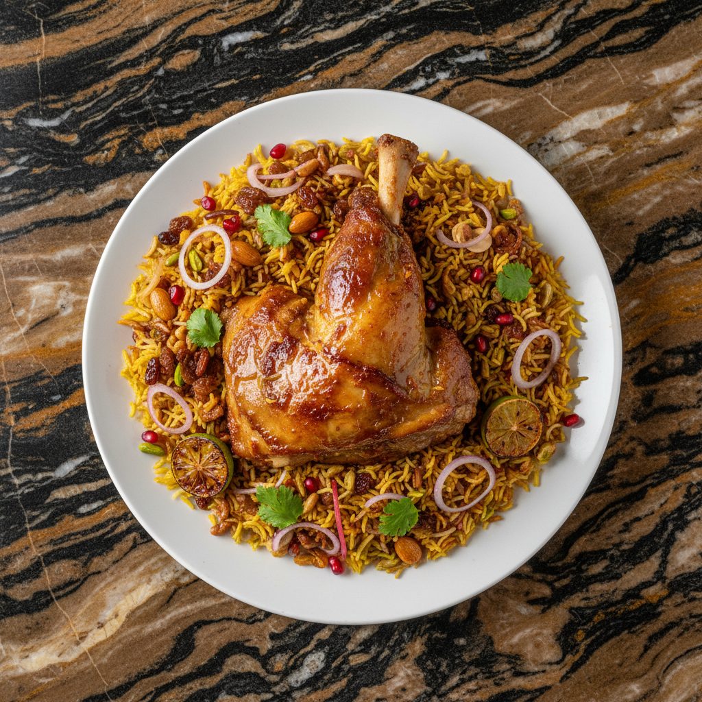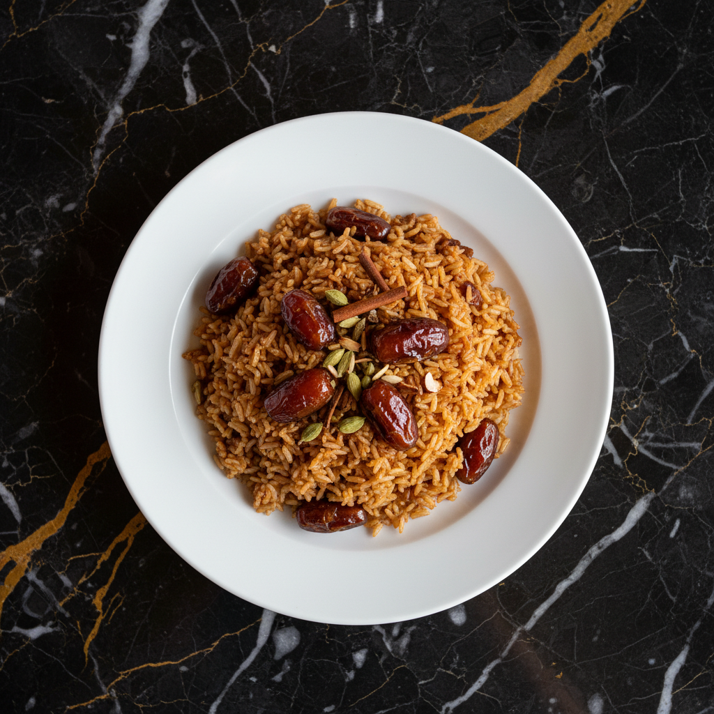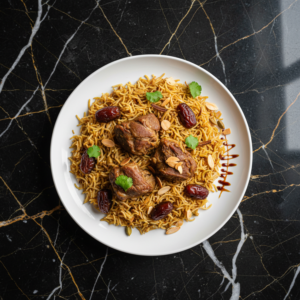 A fragrant and slightly sweet rice dish featuring tender lamb, aromatic spices, and the natural sweetness of dates. This dish offers a comforting and flavorful taste of Bahraini home cooking.