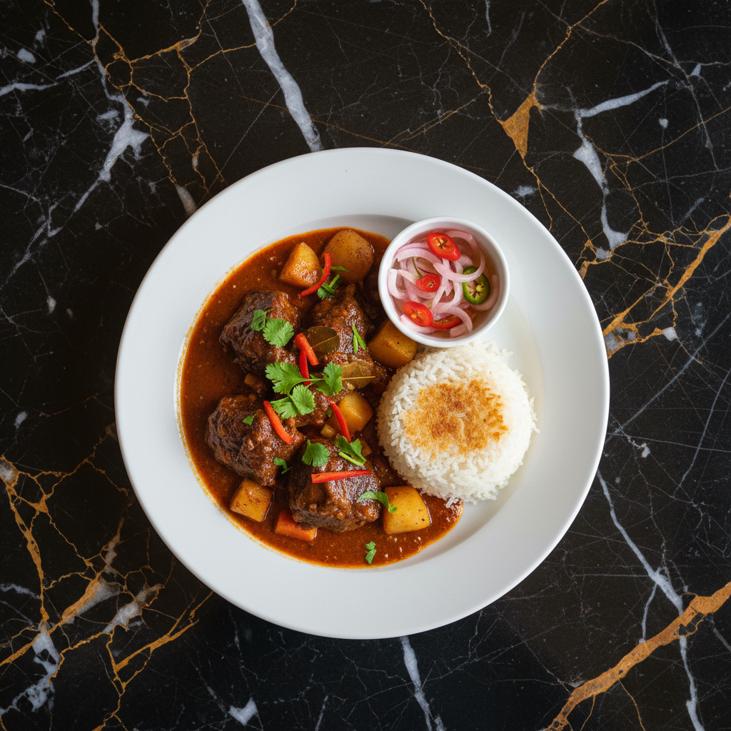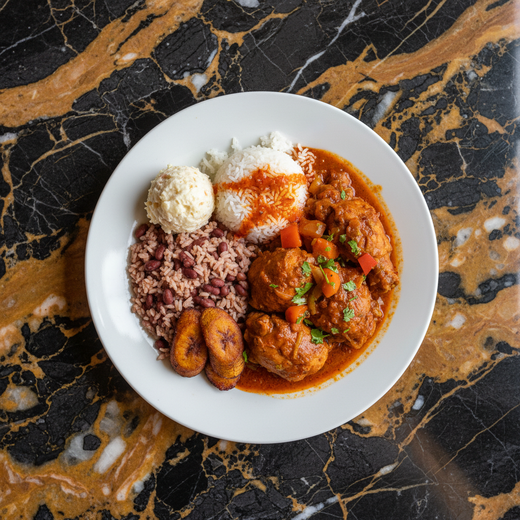 Tender chunks of pork slow-cooked in a rich, savory tomato-based sauce, often served with sweet, caramelized plantains. This dish highlights the blend of Caribbean and Central American influences in Belizean cuisine.