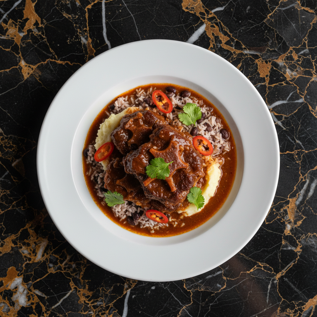 Tender, fall-off-the-bone oxtail slow-cooked in a rich, savory gravy with aromatic spices. This hearty dish is a Belizean classic, often served with rice and beans or mashed potatoes.