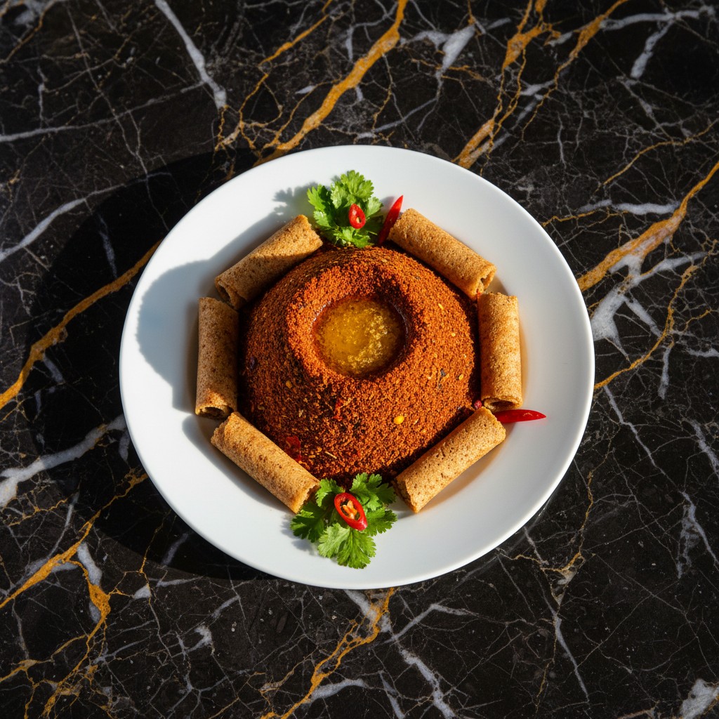 The essential Ethiopian spice blend, known for its complex aroma, vibrant color, and distinctive heat. This homemade version allows for customization of spice levels and freshness.