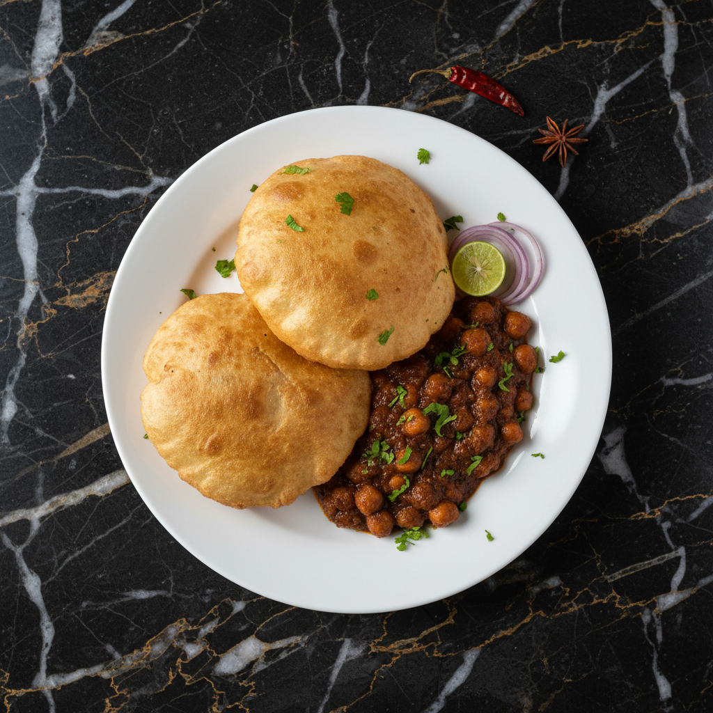 Bhatura is a classic North Indian leavened fried bread, known for its large, puffy, golden-brown appearance. It's a popular street food, especially in Delhi, and is traditionally served with chole (spiced chickpea curry). The dough requires a significant resting period for fermentation, which contributes to its light and airy texture.