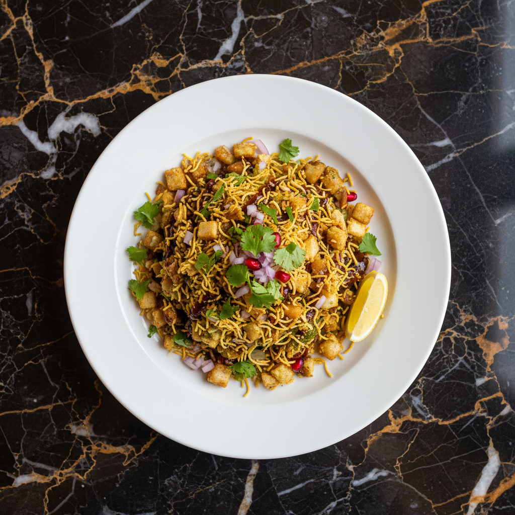 A quintessential Mumbai street food, Bhel Puri is a delightful and quick snack mix featuring crispy puffed rice, crunchy sev (thin gram flour noodles), and a vibrant medley of tangy tamarind chutney, spicy green chutney, and aromatic chaat masala. It's a textural and flavor explosion, best enjoyed immediately.