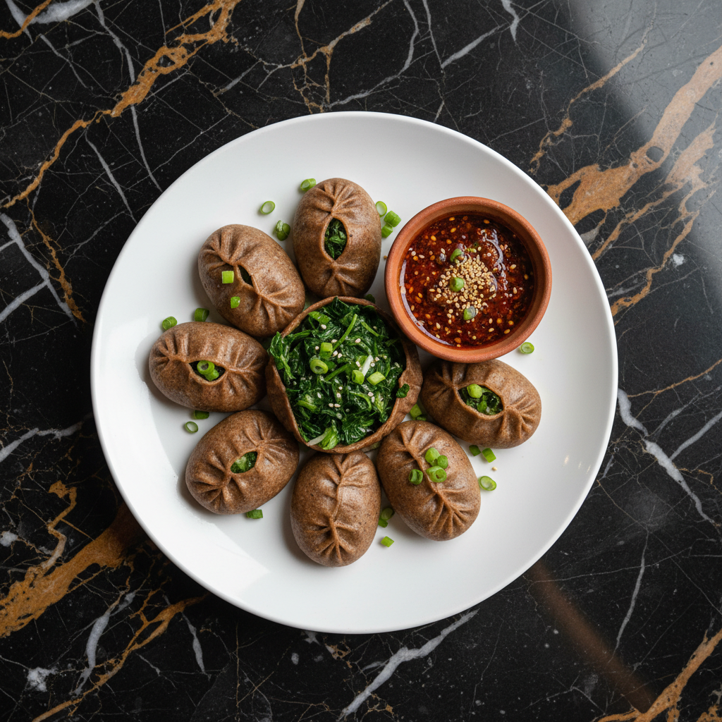 Hoentay are traditional Bhutanese dumplings made with a buckwheat flour dough, filled with a savory mixture of turnip greens, cheese, and aromatics. They are typically steamed and served with a spicy dipping sauce.