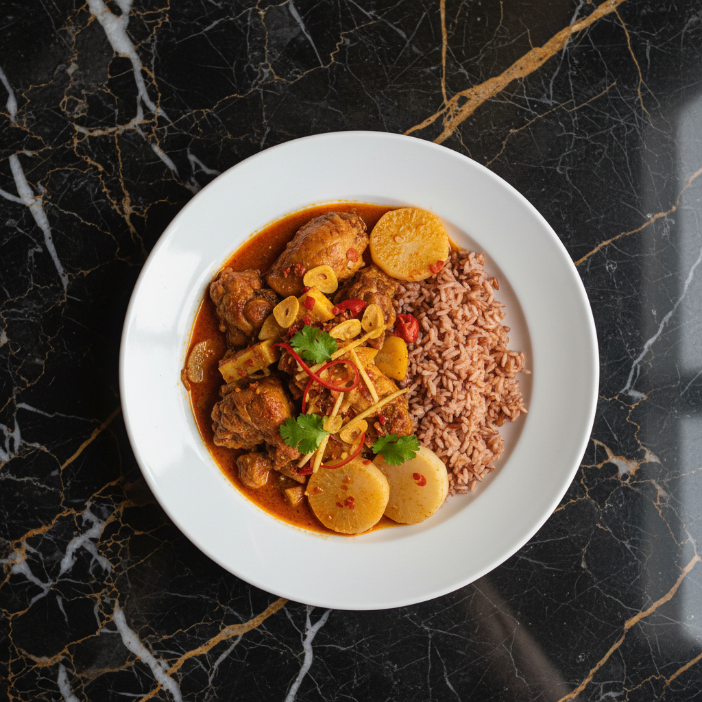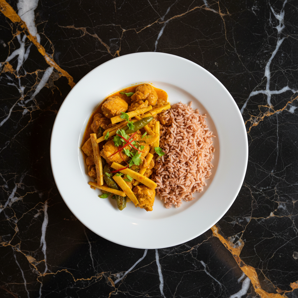 A comforting and flavorful stew featuring tender chicken pieces simmered with fresh bamboo shoots, chilies, and aromatic Bhutanese spices. This dish highlights the use of local ingredients and is a staple in many Bhutanese households, often served with red rice.