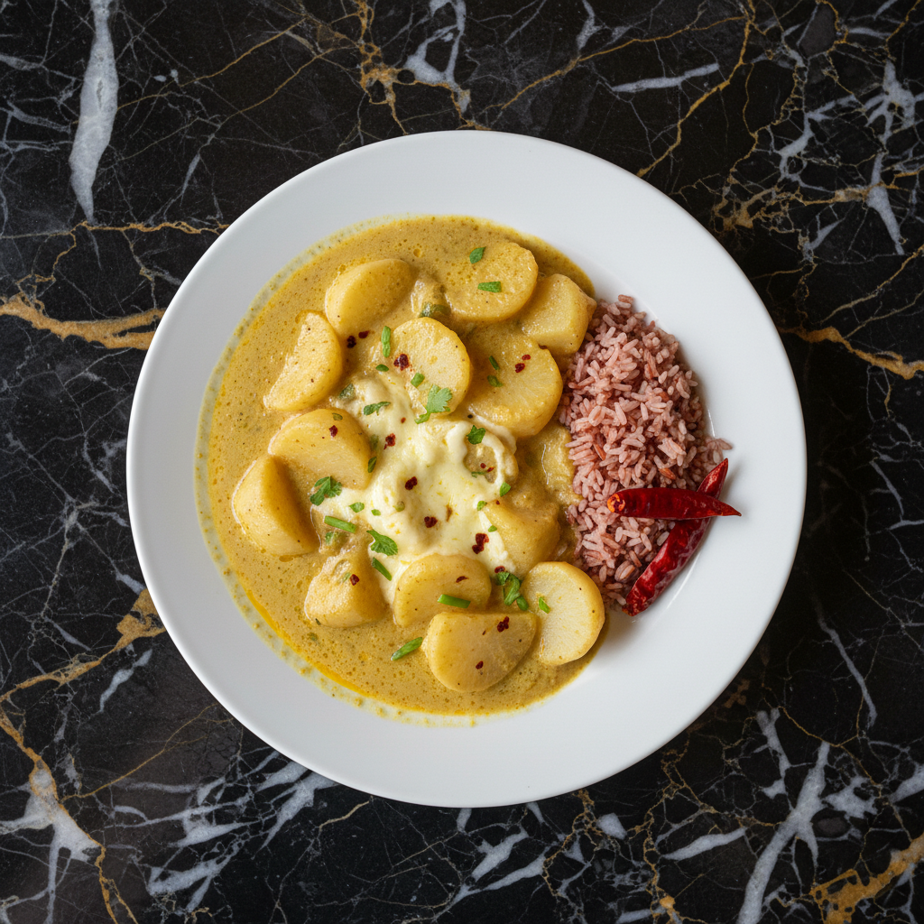A hearty and warming stew featuring tender yak meat simmered with earthy mushrooms and aromatic Bhutanese spices. This dish is a comforting staple, often prepared during colder months, and is typically served with red rice.