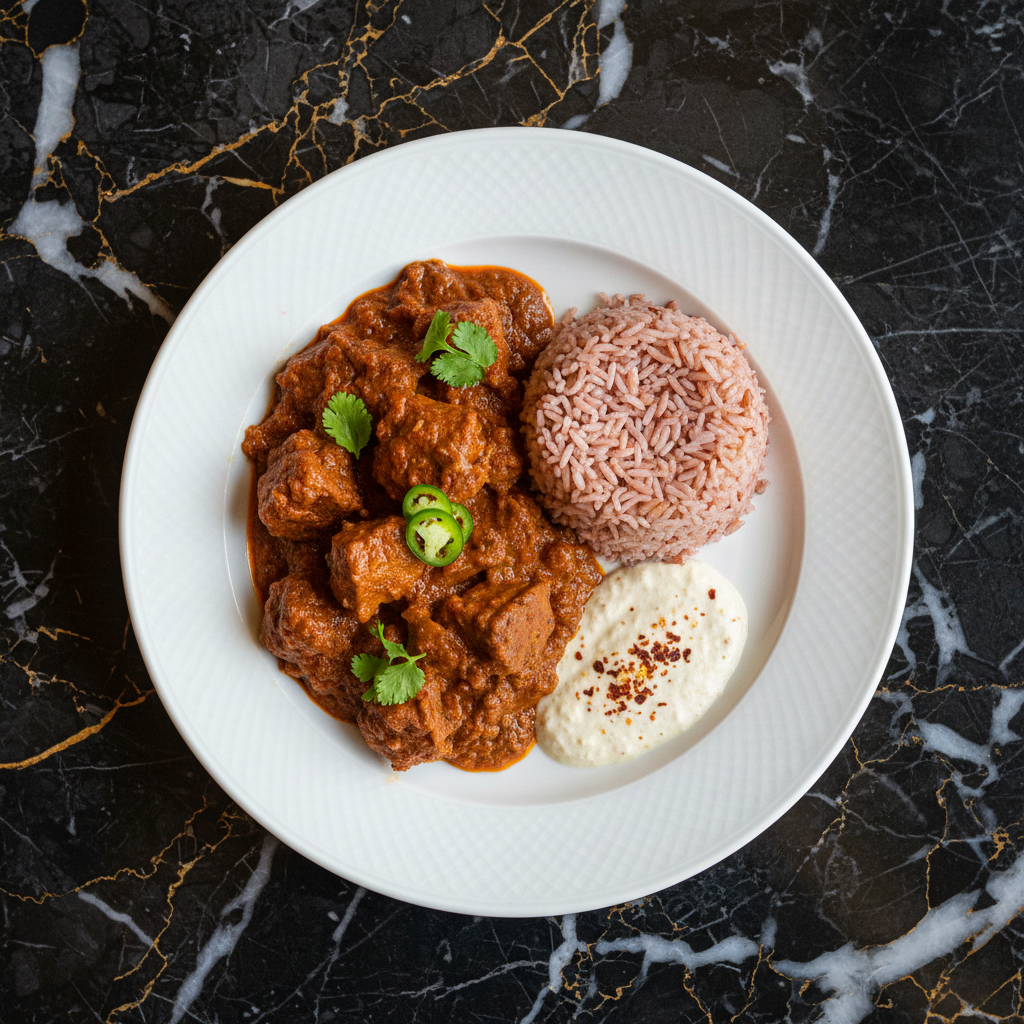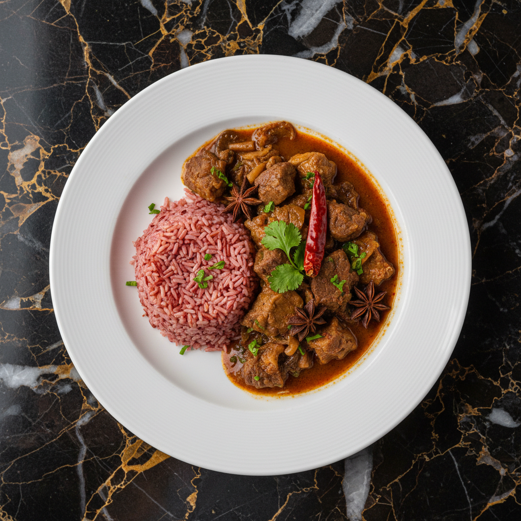 A hearty and flavorful curry made with tender yak meat, slow-cooked with aromatic spices and often served with red rice. This dish is a staple in regions where yak herding is common.
