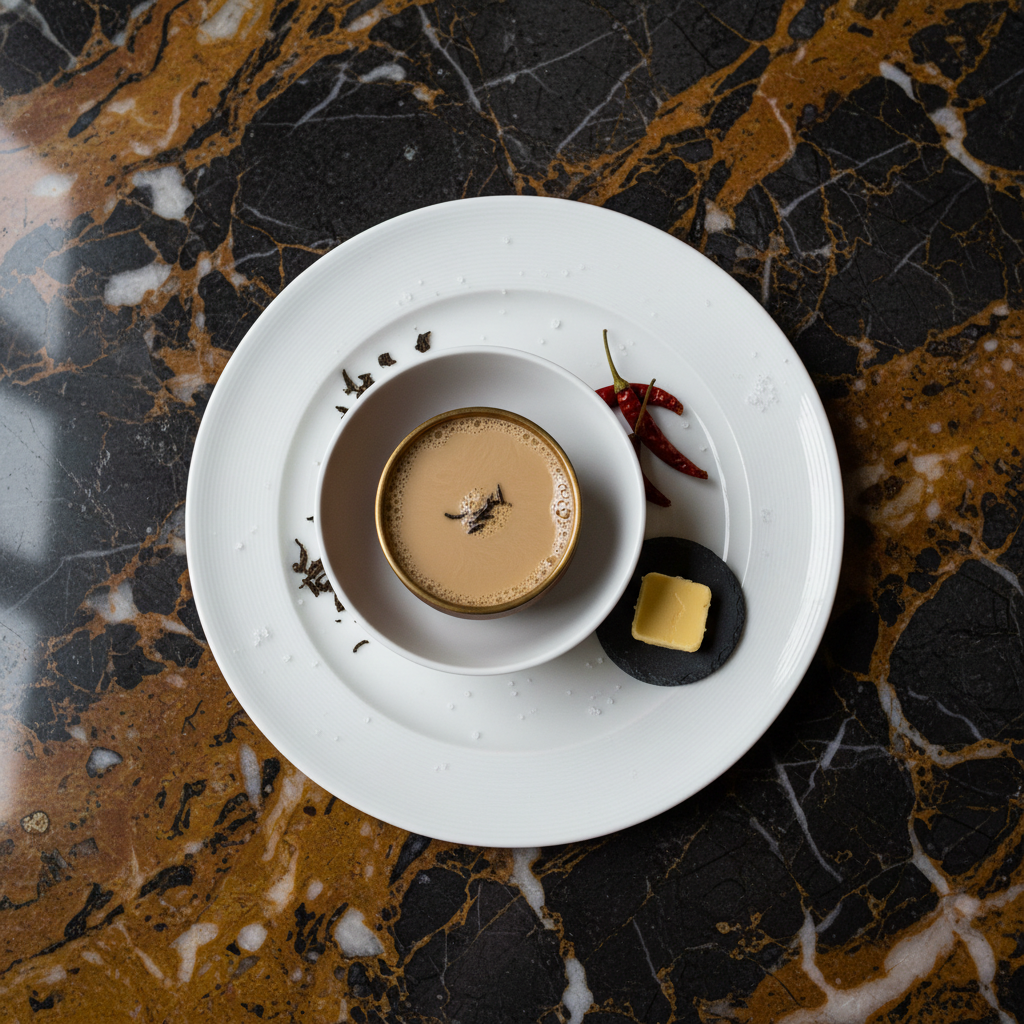 A traditional Bhutanese beverage made from yak butter, tea leaves, salt, and sometimes milk. It's a staple in Bhutanese households, providing warmth and energy, especially in colder regions.