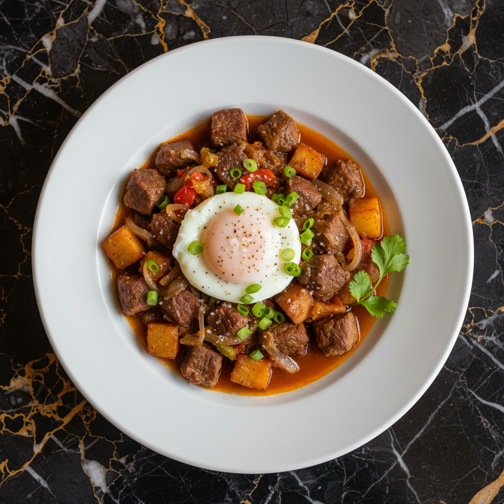 Bife Koygua is a hearty and flavorful Paraguayan beef stew, often prepared as part of a traditional asado (barbecue). It features tender pieces of beef simmered with vegetables and is famously topped with a perfectly poached egg, which adds a rich, creamy element to the dish. This stew is celebrated for its simple yet profound flavors, showcasing how basic ingredients can create a deeply satisfying meal.