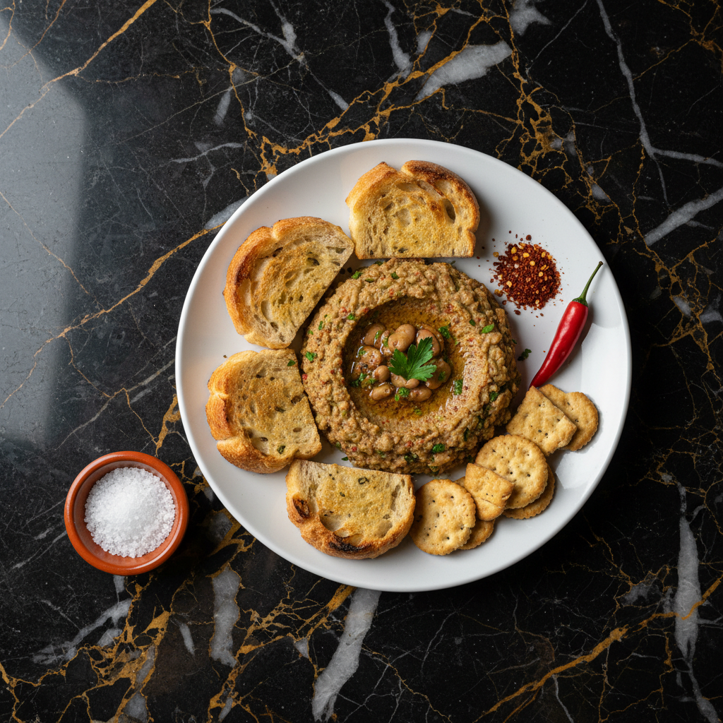 A rustic and flavorful dip made from mashed broad beans, garlic, and a blend of spices, often served with crusty bread or crackers. It's a staple appetizer in Maltese cuisine.