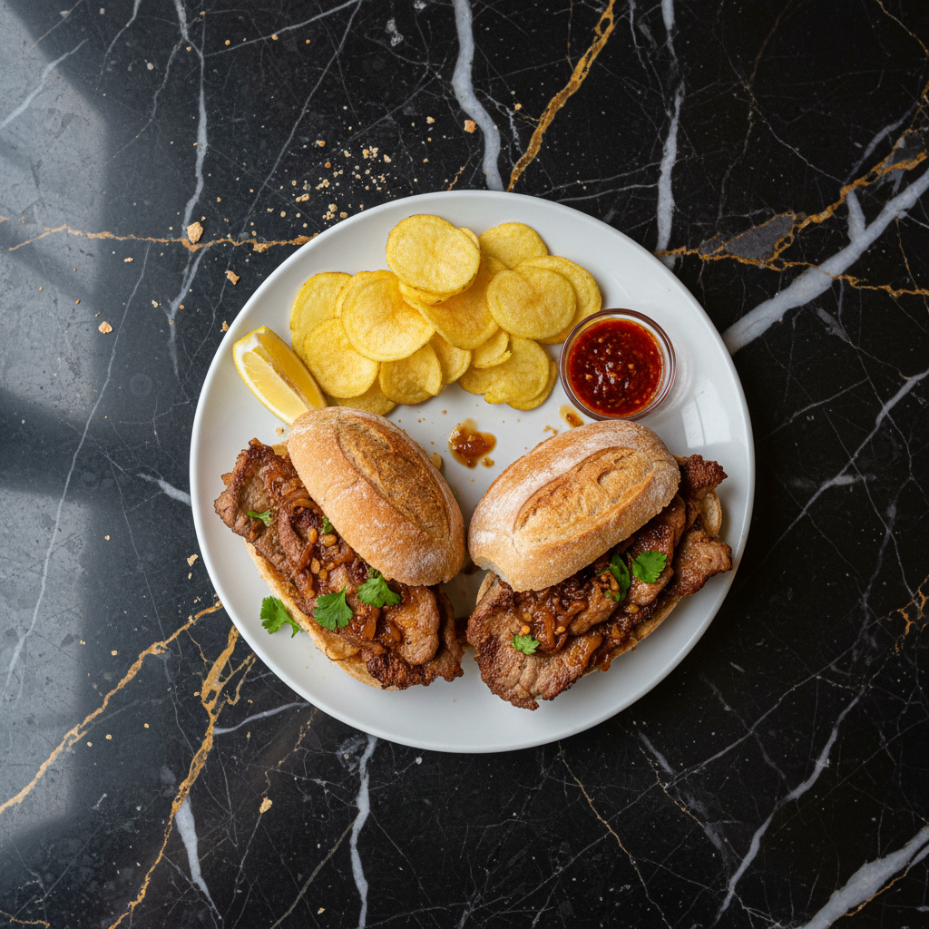 Bifanas are a beloved Portuguese street food classic: thinly sliced pork marinated in garlic and white wine, then quickly pan-fried and served in crusty bread rolls. They are incredibly flavorful, quick to make, and perfect for a casual meal or snack.