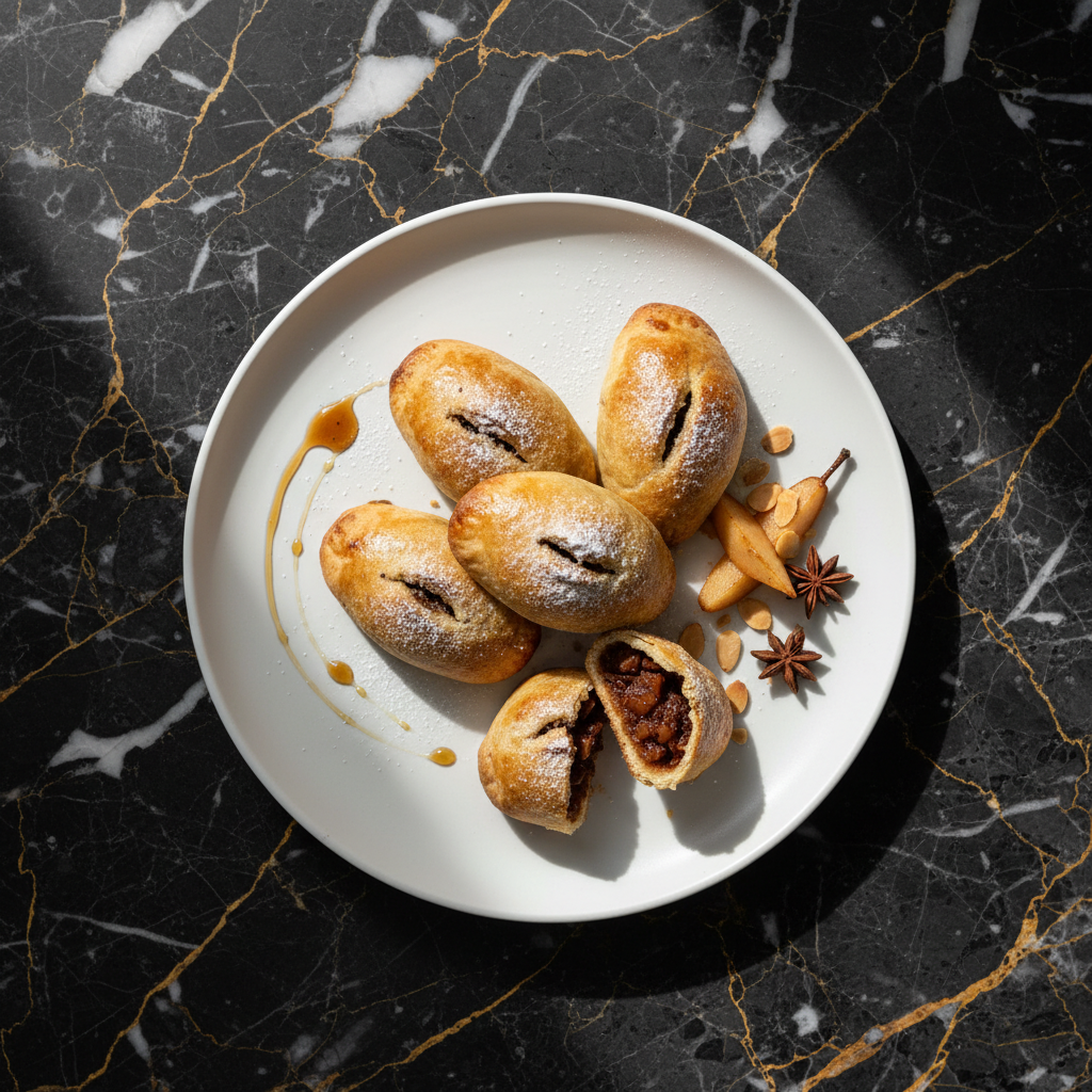 Birnenweggen are a sweet pastry from Northwestern Switzerland, typically made with a spiced pear filling encased in a flavorful dough. They are often enjoyed during autumn and winter.