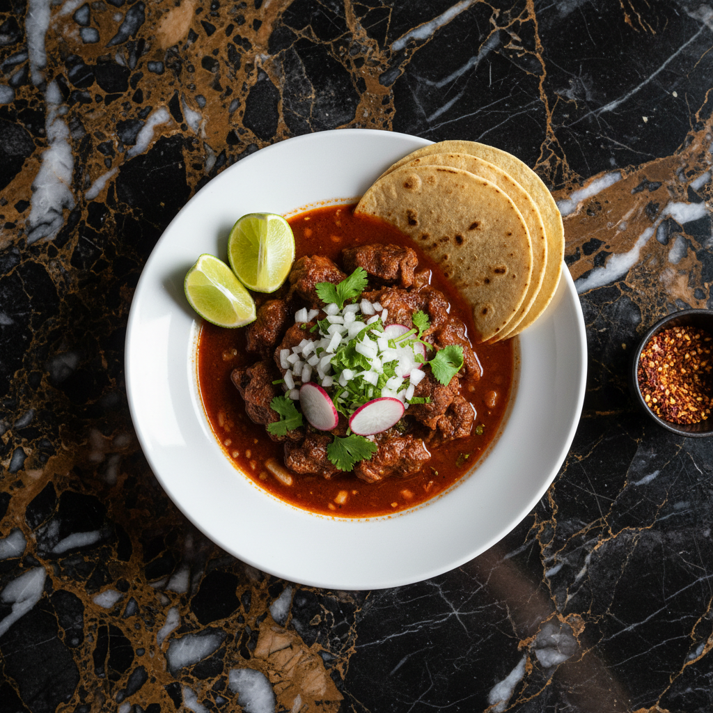 A rich and flavorful Mexican slow-braised beef stew, featuring tender chunks of beef simmered in a complex consommรฉ infused with dried chilies and aromatic spices. Traditionally from Jalisco, this dish is perfect for special occasions and can be served as a hearty stew or used to make delicious birria tacos.