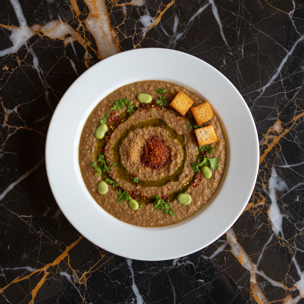 A hearty and comforting Moroccan street food classic, Bissara is a thick, pureed soup made from dried fava beans, seasoned with cumin and garlic, and finished with a generous drizzle of olive oil. Traditionally enjoyed as a breakfast dish, it's perfect for a chilly morning.