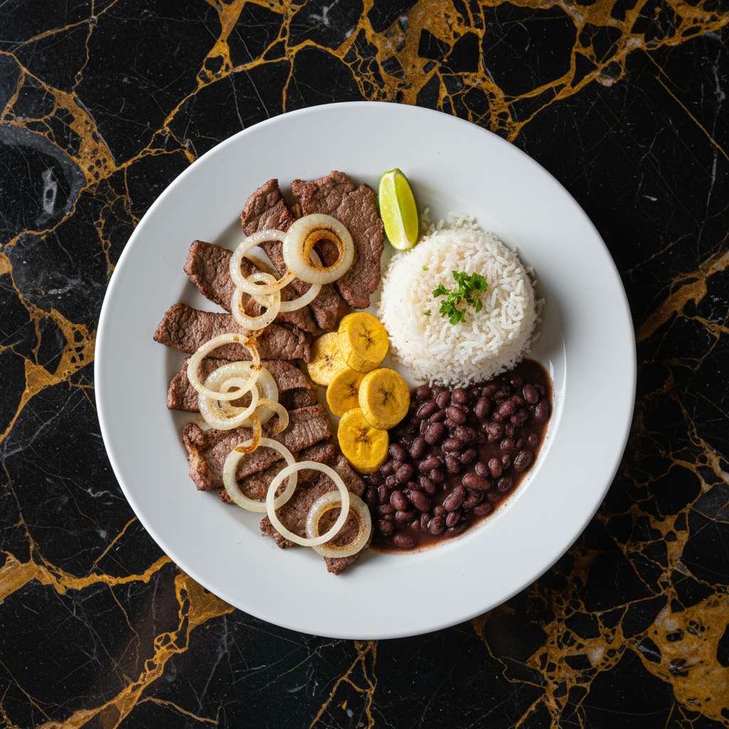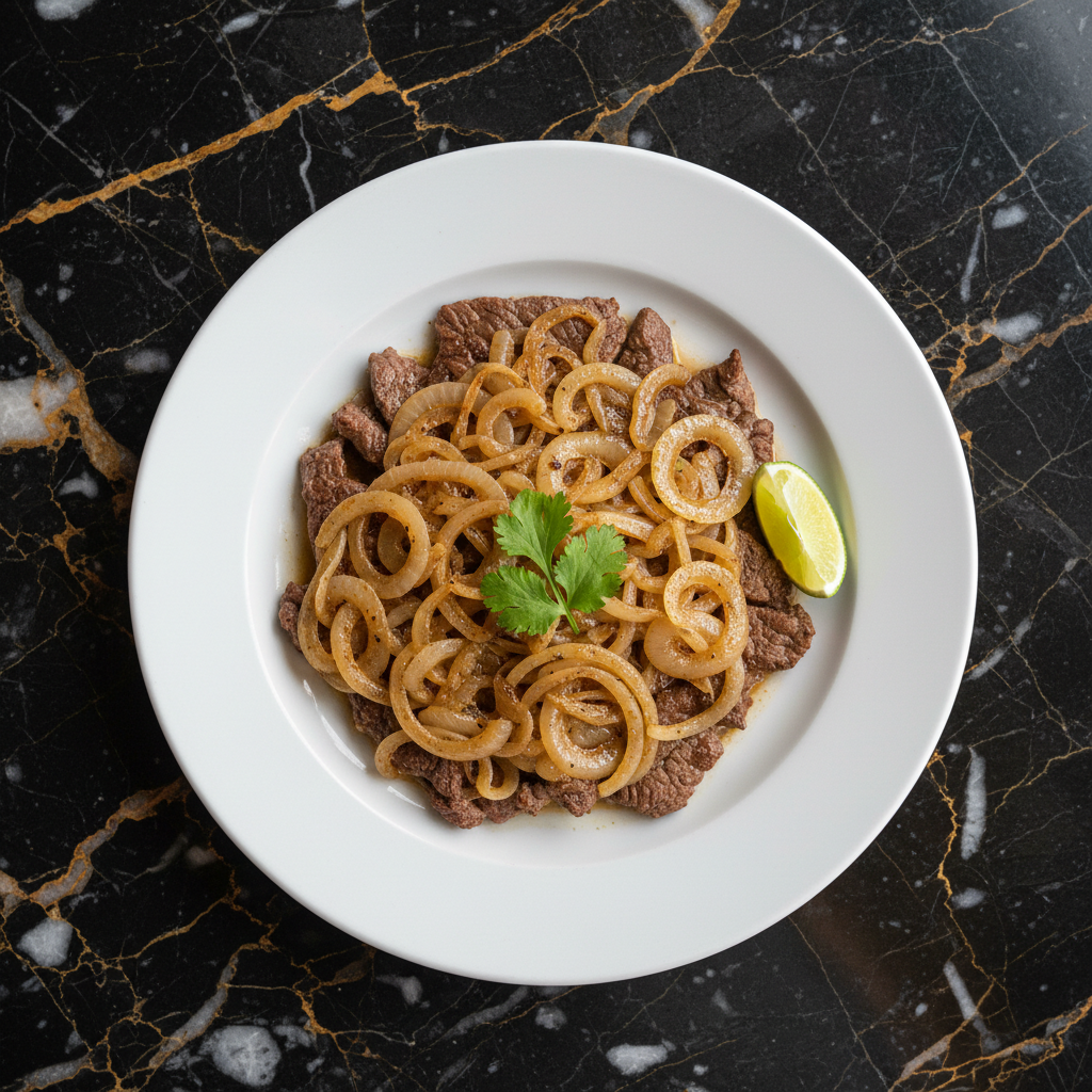 Thinly sliced steak marinated in a flavorful mixture of citrus, garlic, and spices, then quickly cooked and smothered with sweet, tender sautรฉed onions.