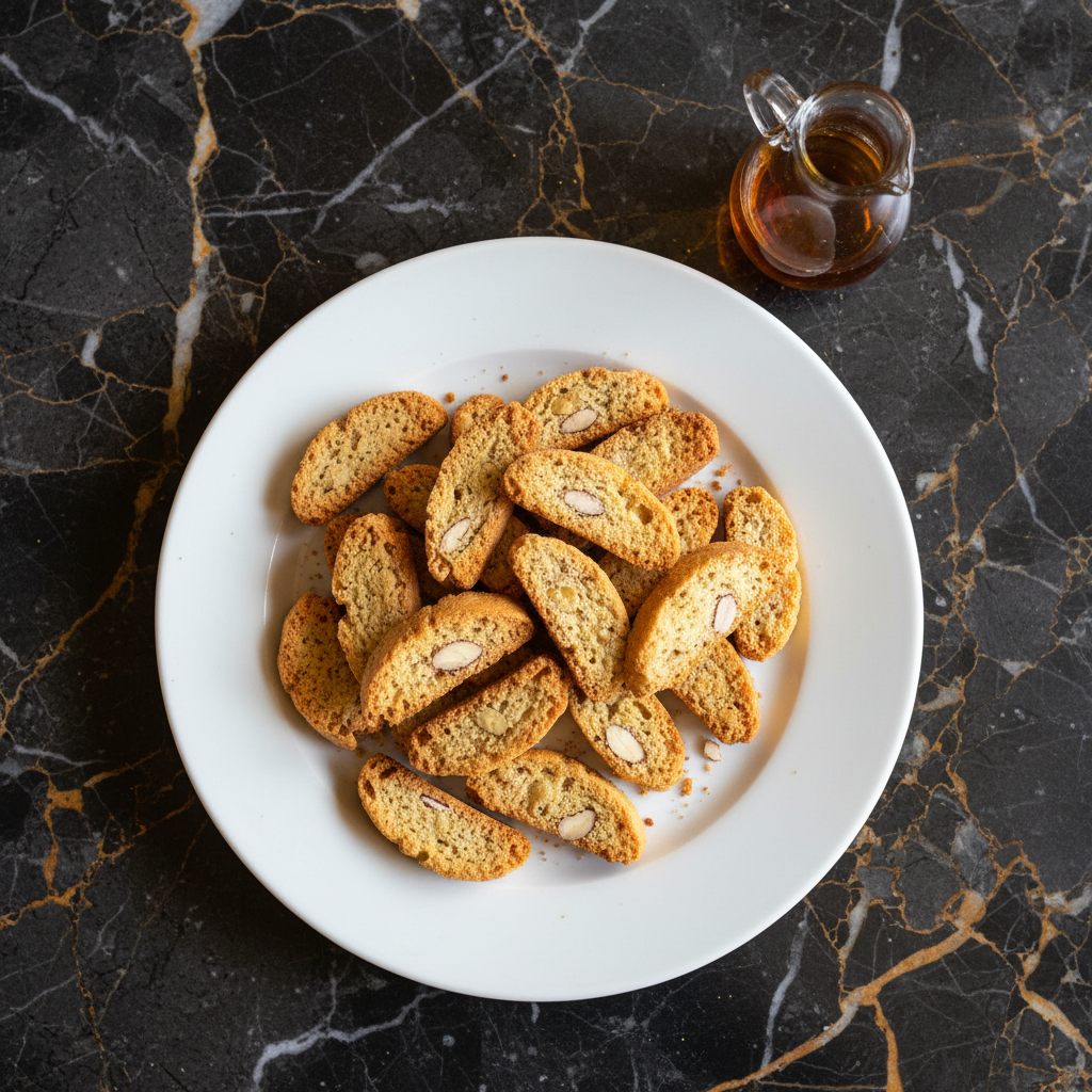 Authentic Tuscan almond cookies, also known as Cantucci or Biscotti di Prato. These twice-baked, crunchy delights are traditionally served with Vin Santo for dipping, but are also delicious on their own. The absence of butter or oil contributes to their signature crispness.