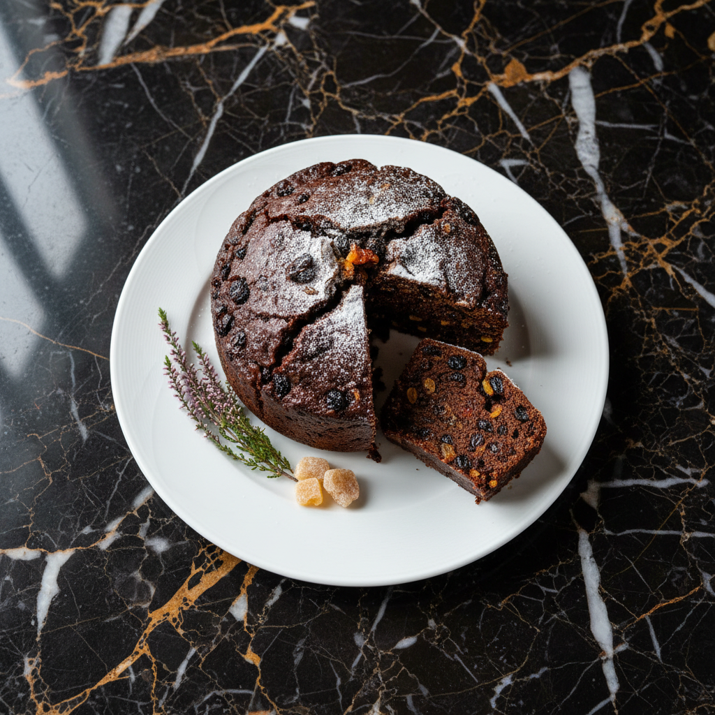 A rich, dark, fruit-filled cake traditionally eaten on Burns Night and Hogmanay. It's characterized by its dense texture, abundance of dried fruits, and a hint of whisky or brandy.