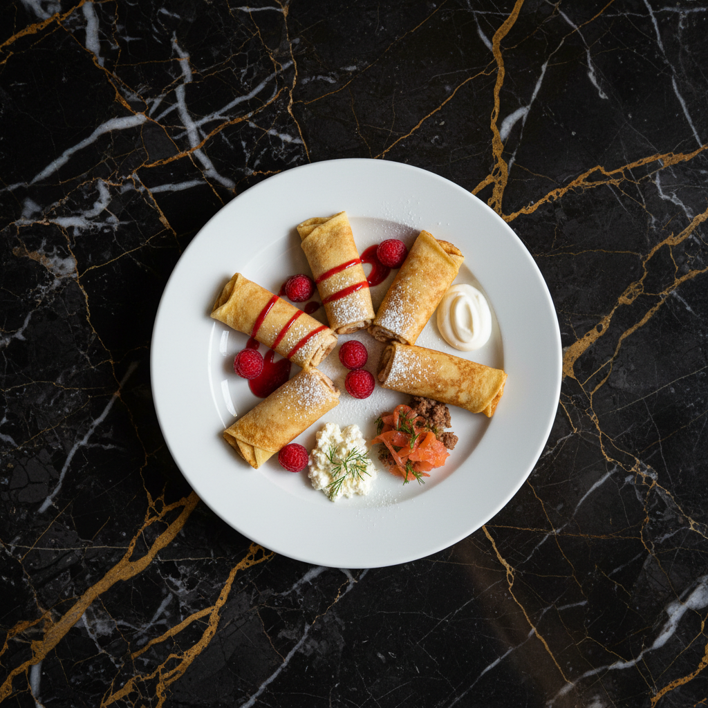 Delicate, thin Russian crepes (blinchiki) that can be filled with a variety of sweet or savory options. This recipe focuses on the crepe preparation, with suggestions for common fillings.