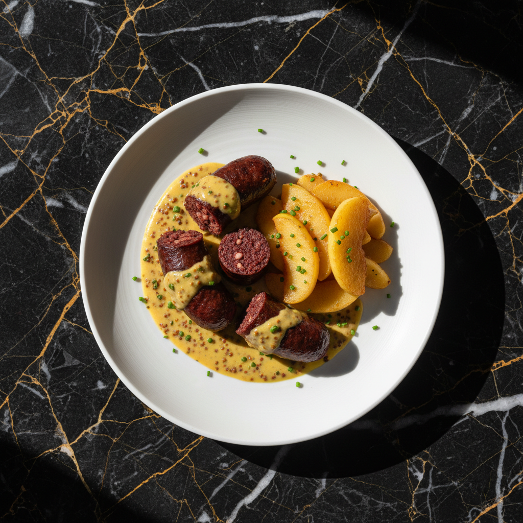 Blood Sausage with Apples and Mustard Sauce