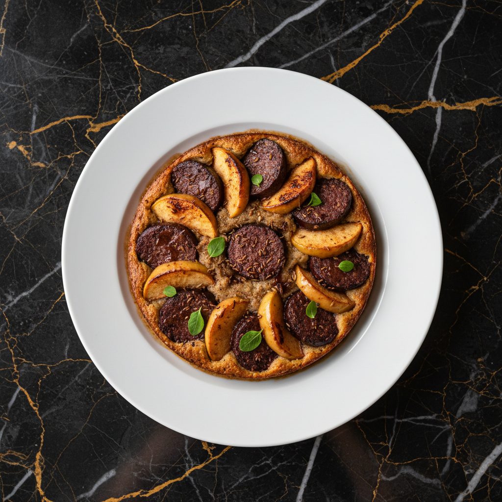 A comforting and flavorful bake combining the savory depth of blood sausage with the sweet tartness of baked apples, often enhanced with warming spices. This dish is a delightful contrast of textures and flavors, perfect as a main course or a substantial side.