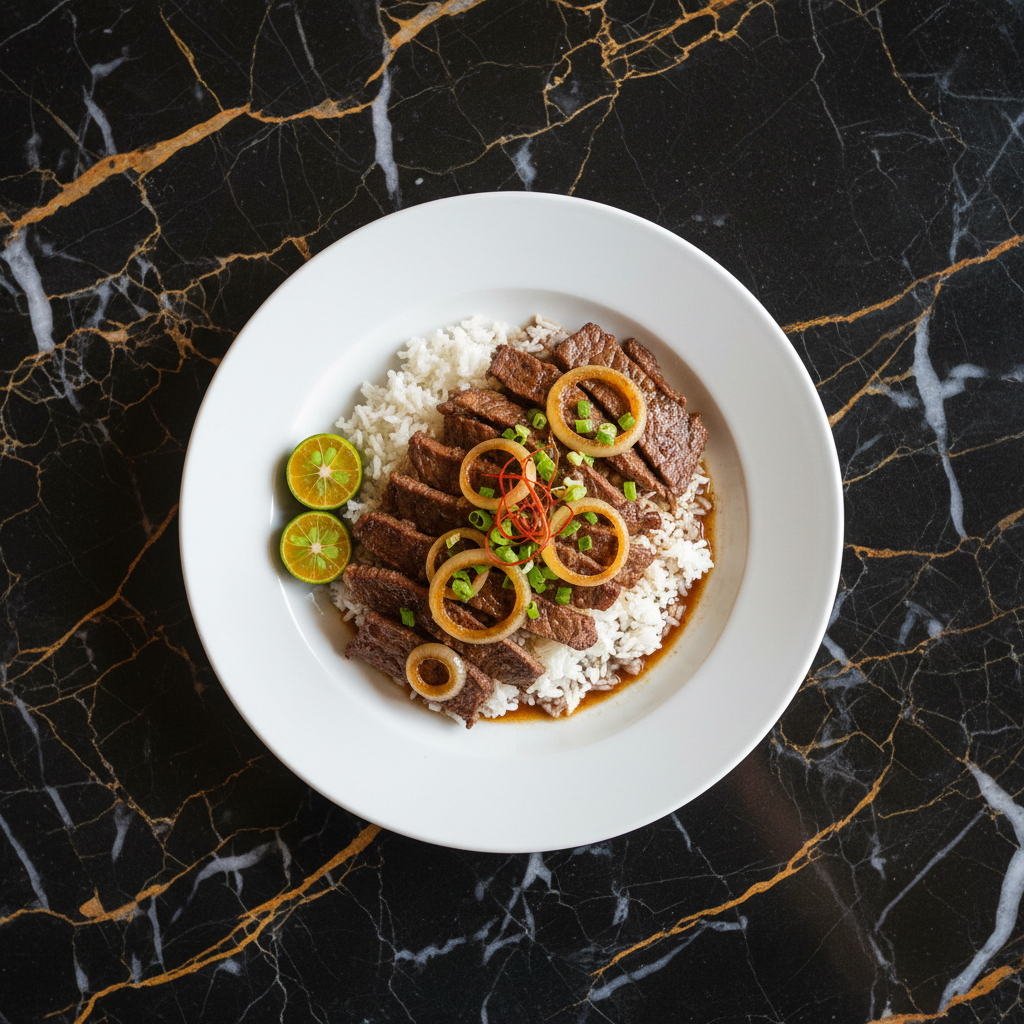 Bistek Tagalog, also known as Filipino beef steak, is a classic dish featuring thinly sliced beef marinated in a tangy and savory blend of citrus and soy sauce, then pan-fried and served with caramelized onions. It's a quick and flavorful weeknight meal.